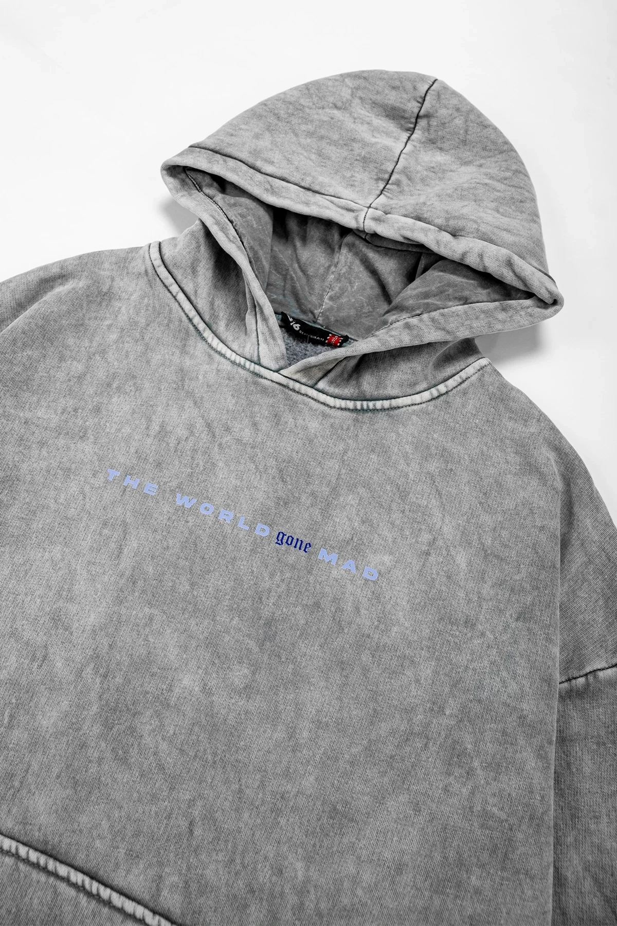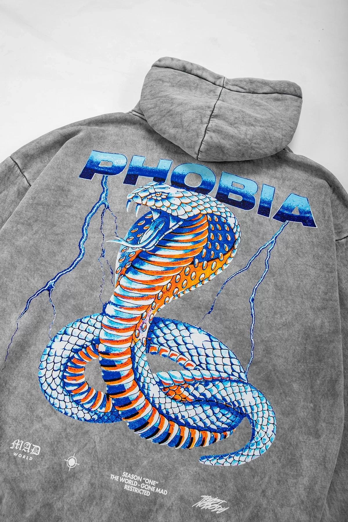 Yıkamalı Beyaz Phobia Sırt Baskılı Unisex Oversize Hoodie