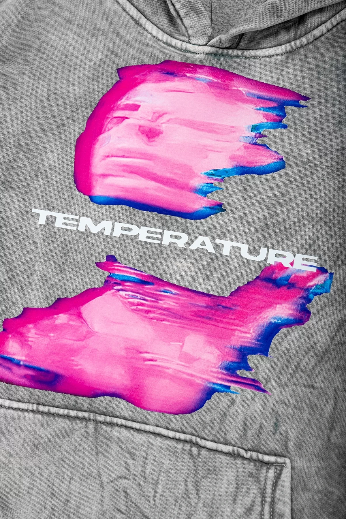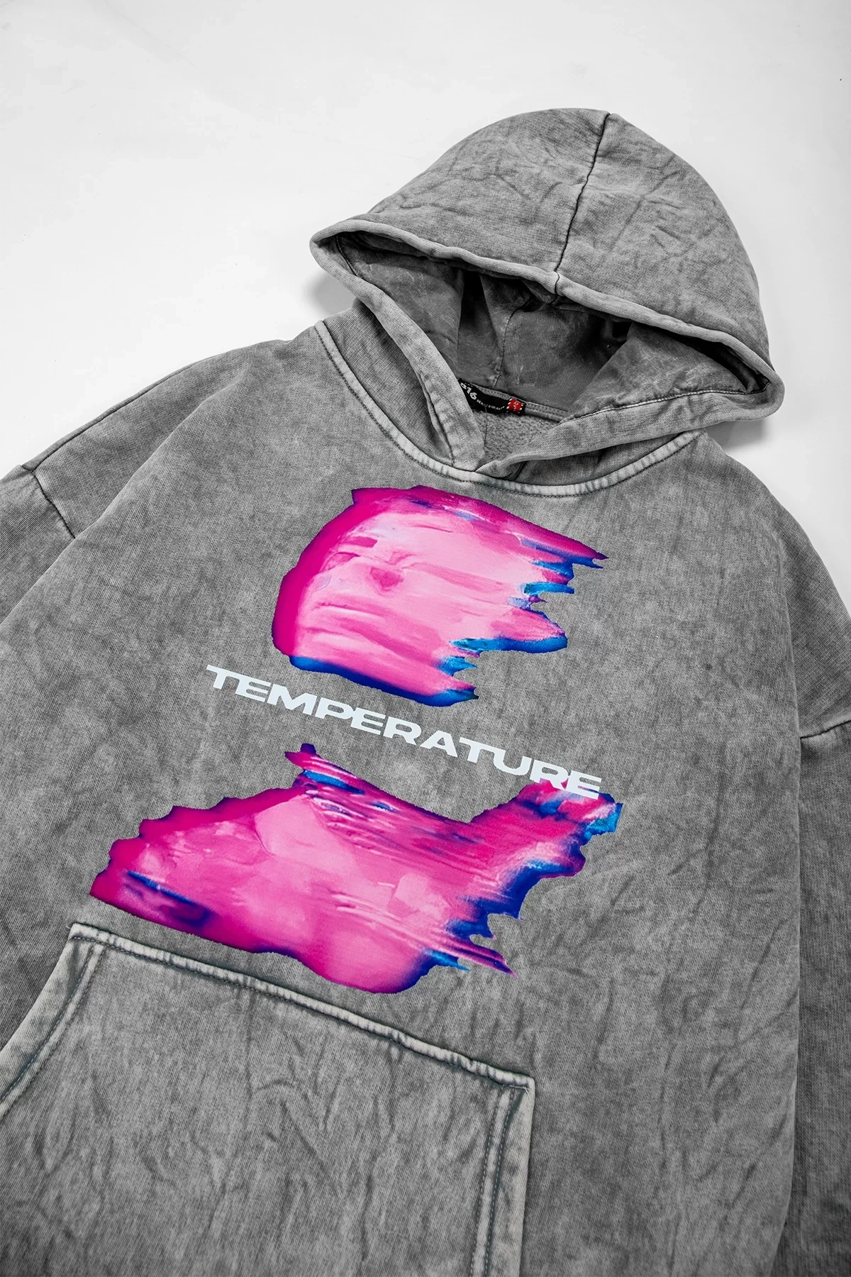 Yıkamalı Beyaz Temperature Baskılı Oversize Unisex Hoodie