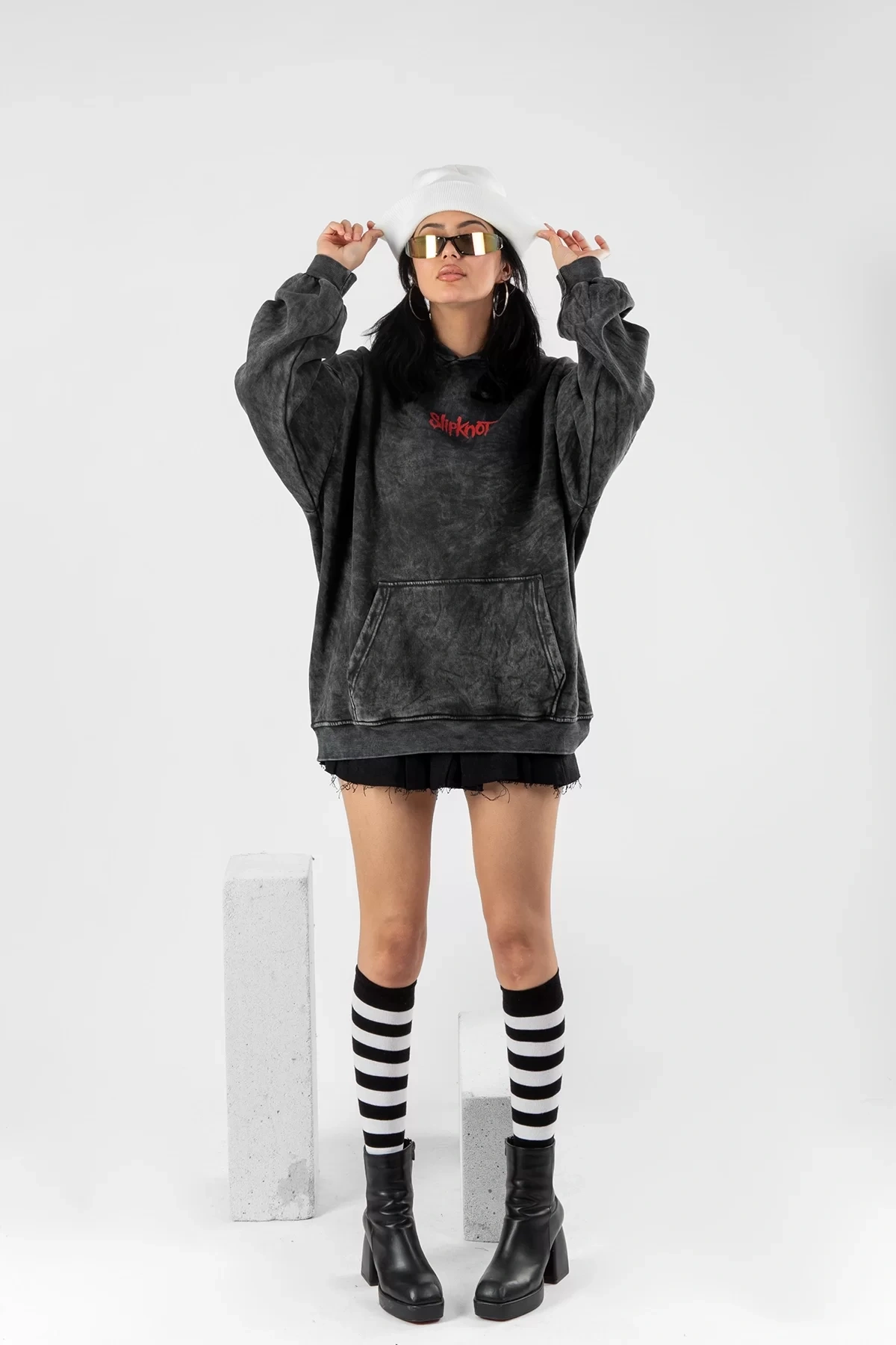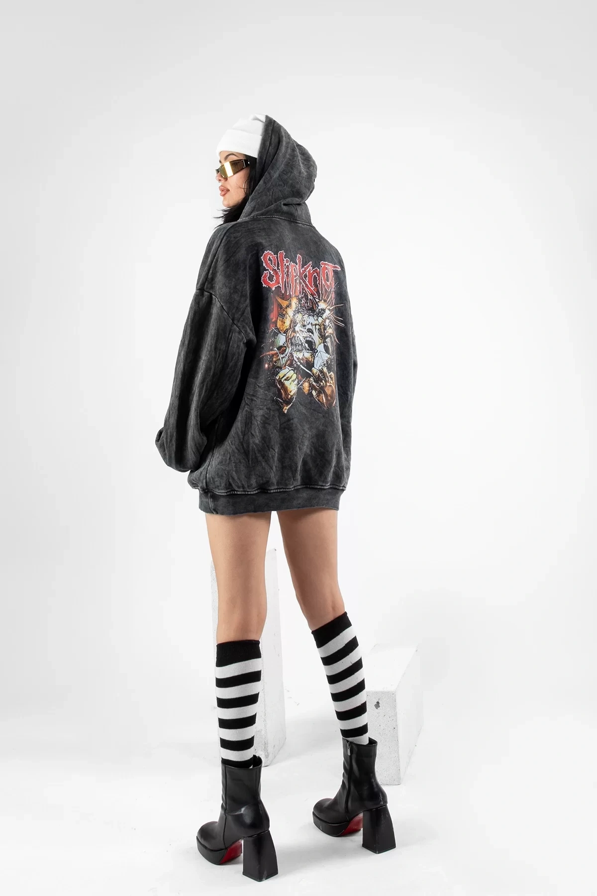 Yıkamalı Siyah Slipknot Sırt Baskılı Oversize Unisex Hoodie