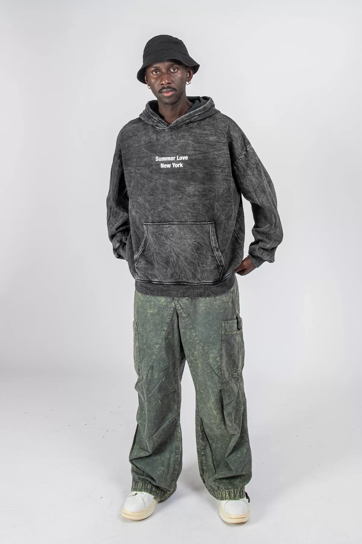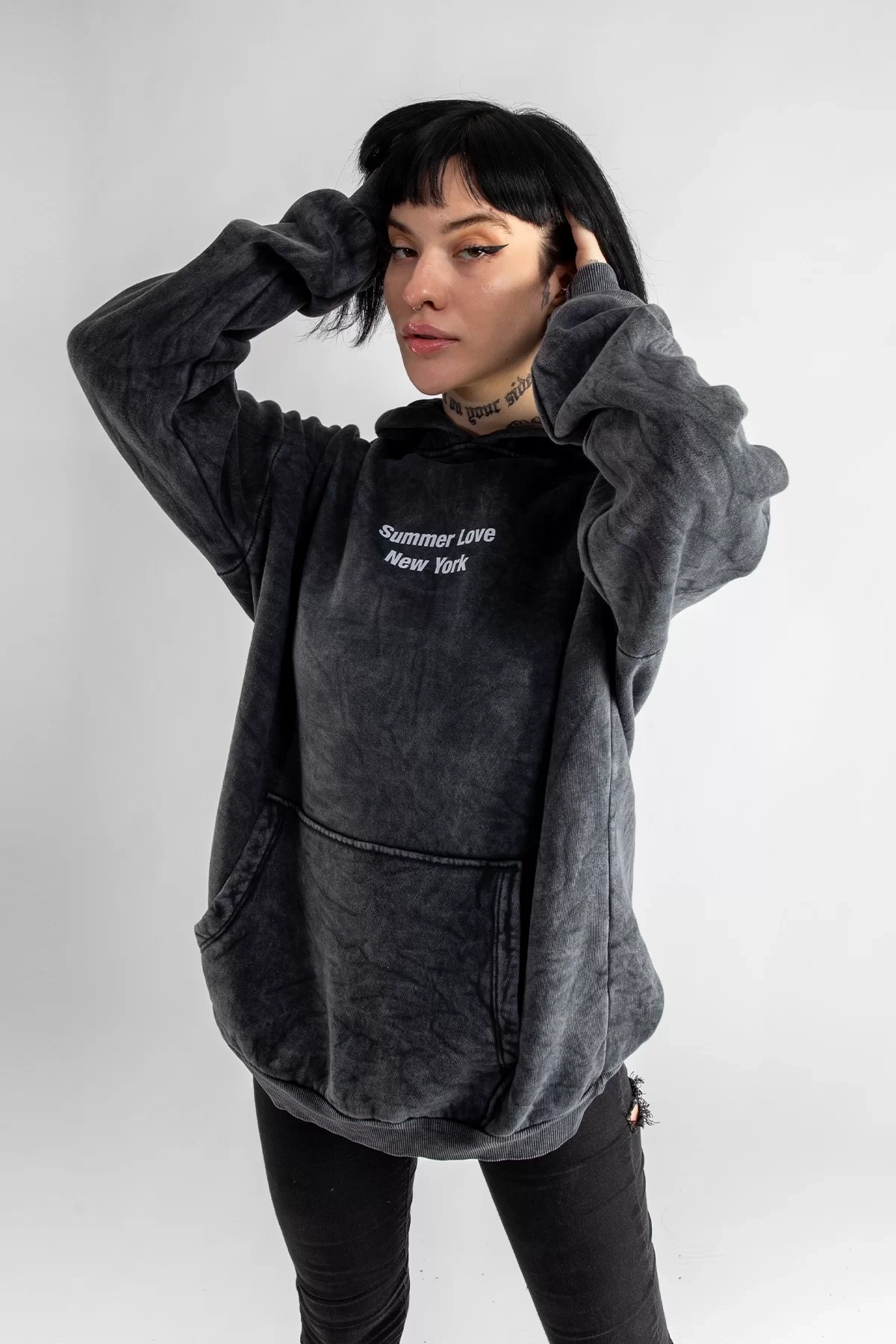 Yıkamalı Siyah Summer Love Sırt Baskılı Oversize Unisex Hoodie