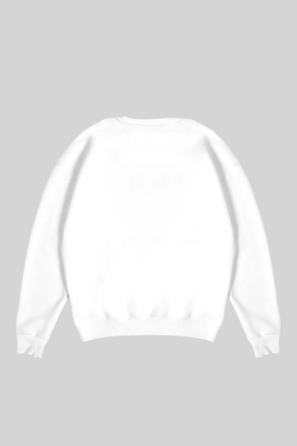 Kapüşonsuz Basic Oversize Unisex Beyaz Sweatshirt