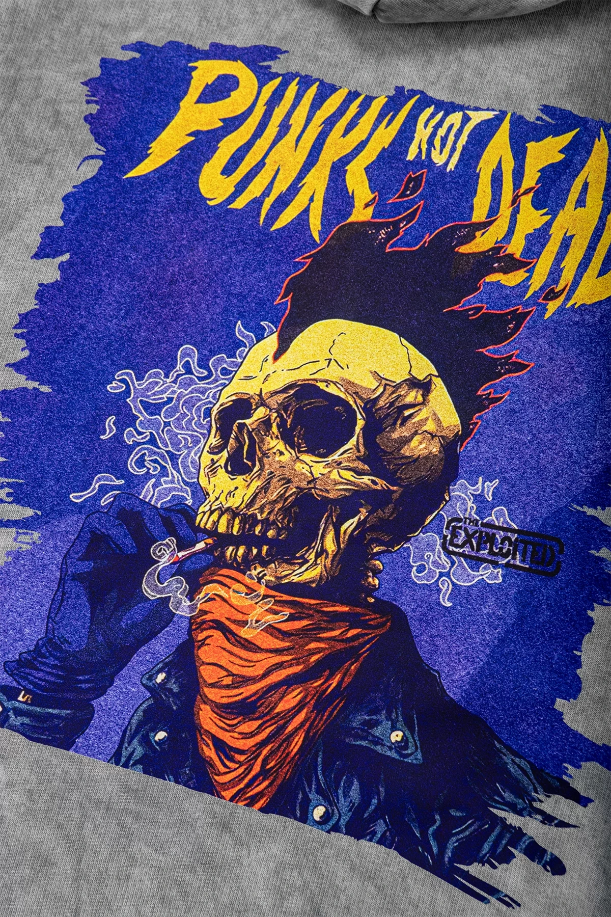 Yıkamalı Beyaz Punks Not Dead Baskılı Oversize Unisex Hoodie