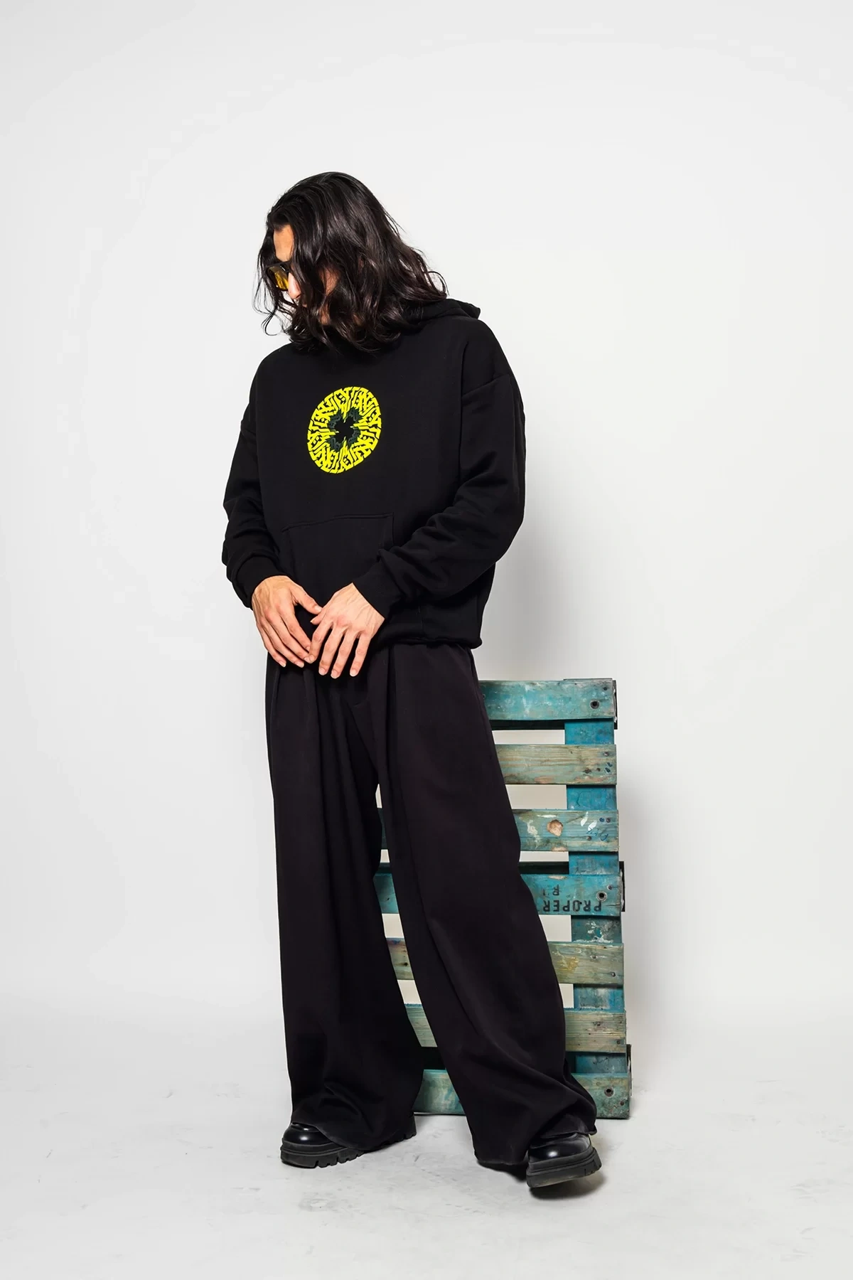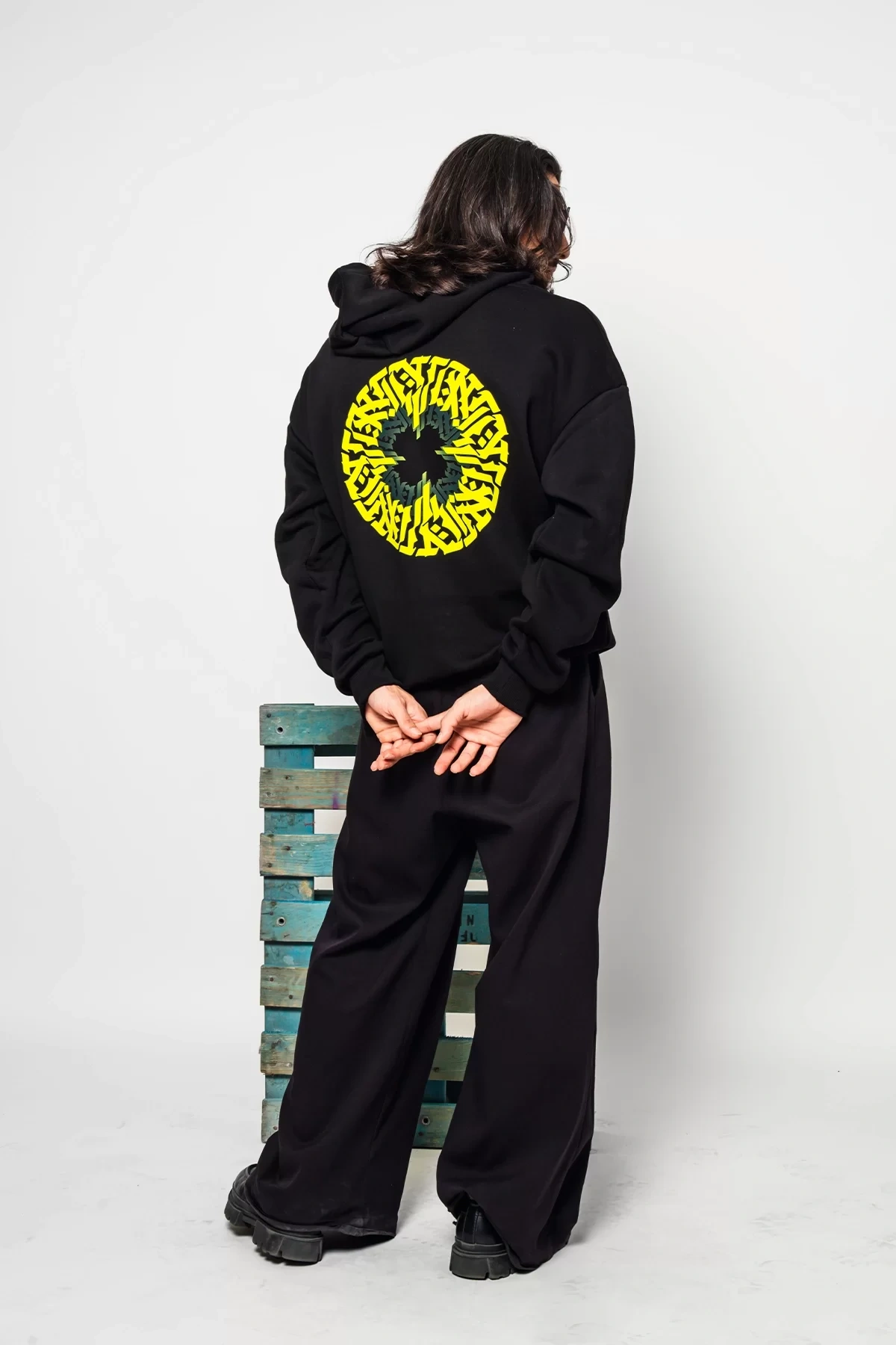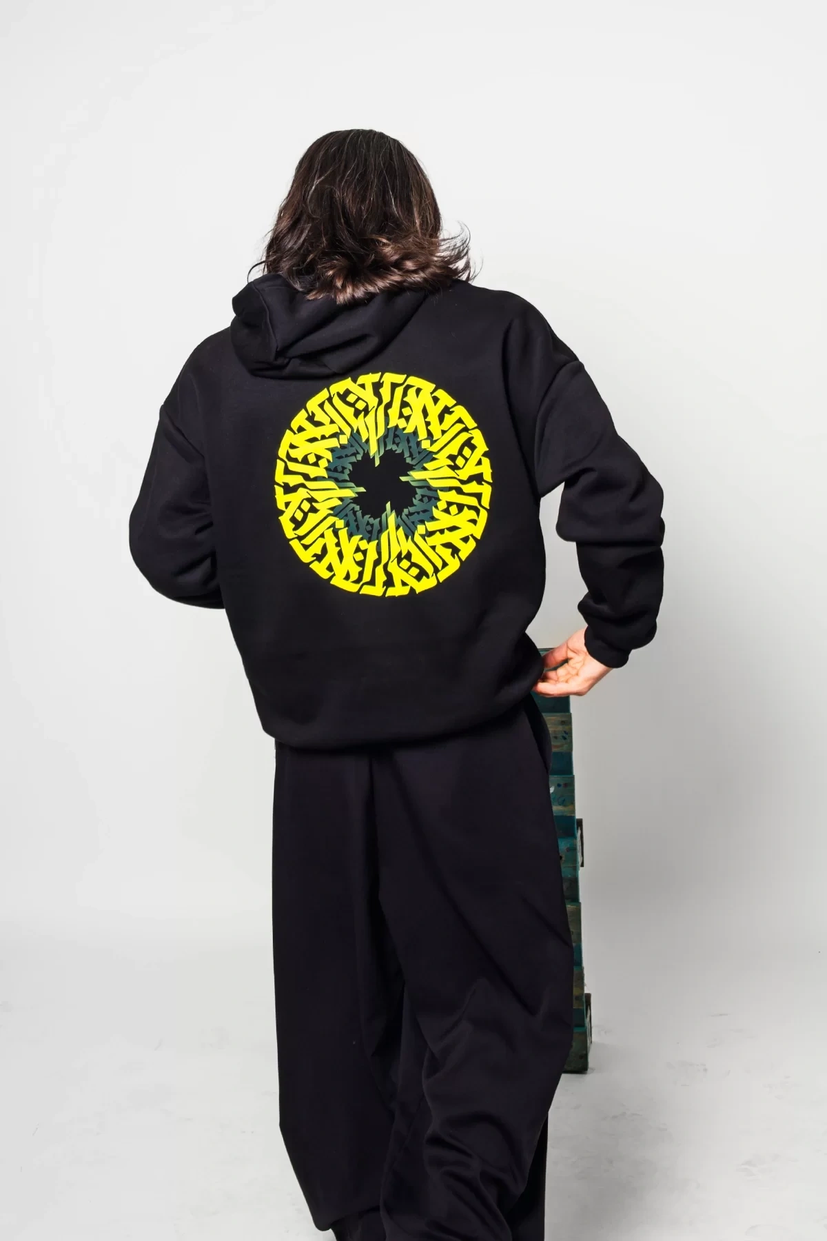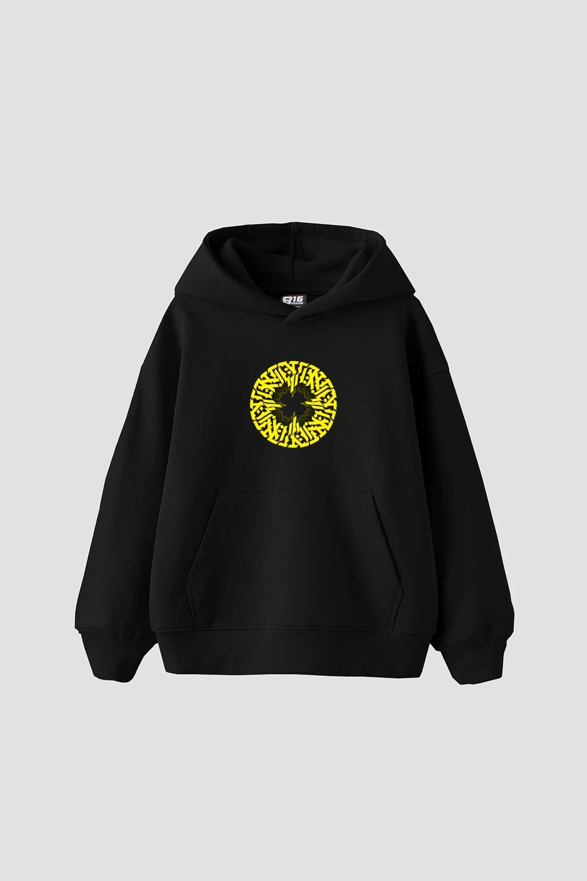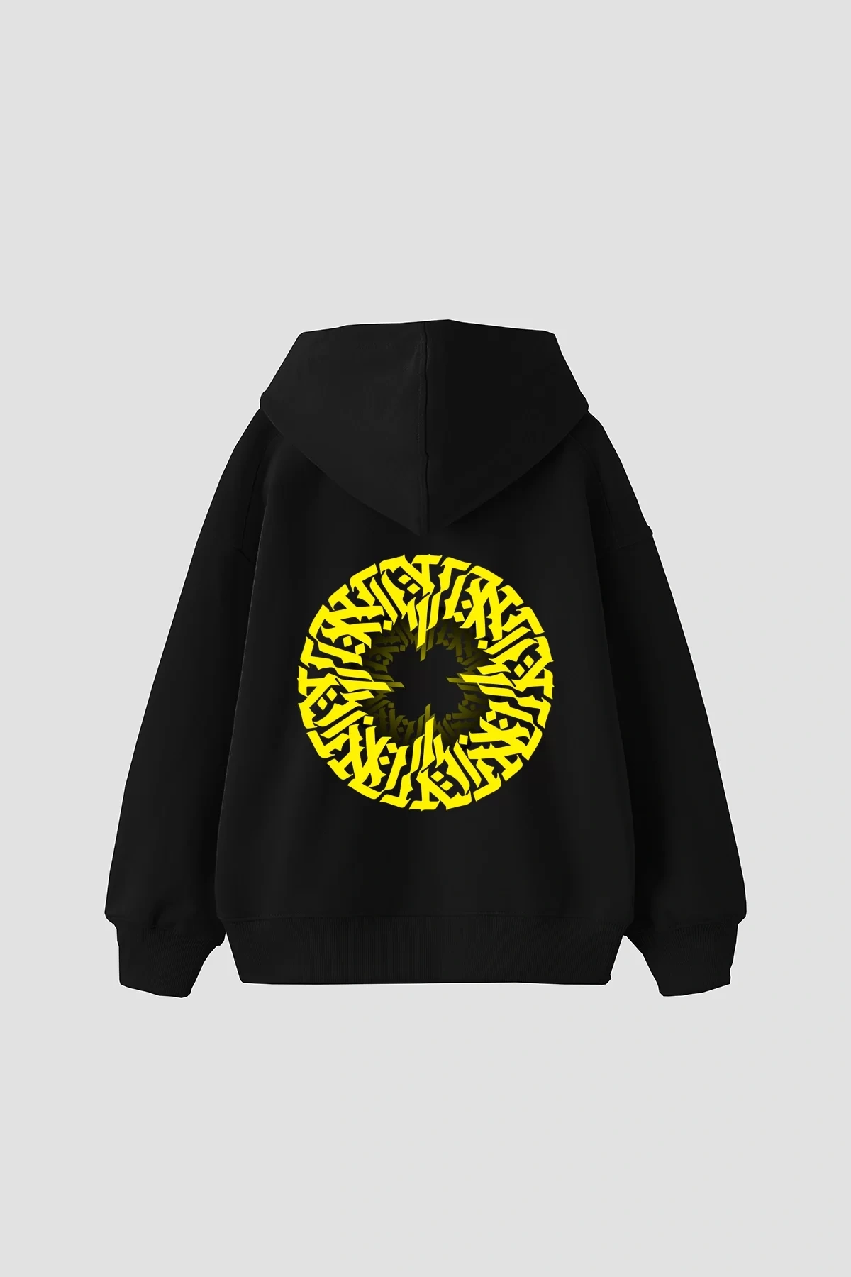 Arabic Font Sarı Baskılı Baskılı Oversize Unisex Premium SiyahHoodie