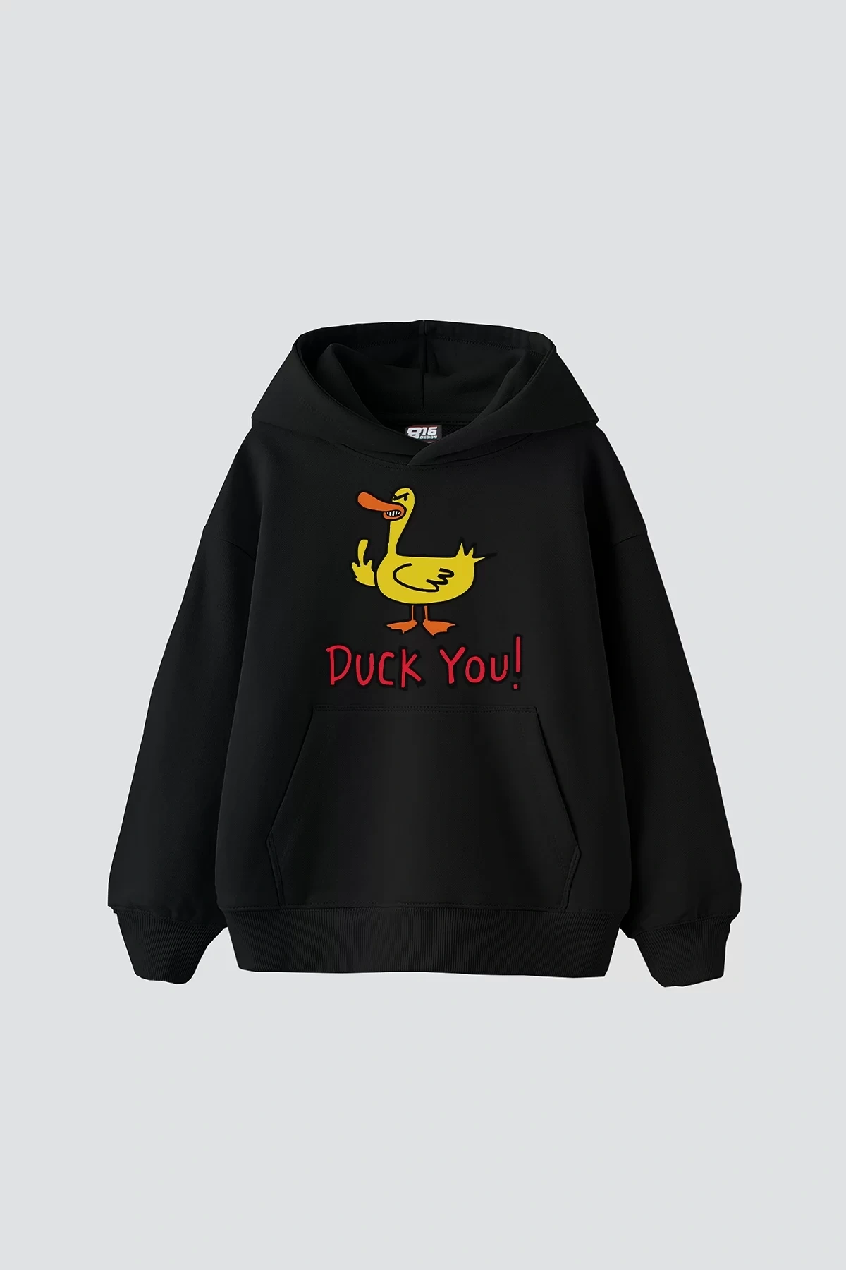 Duck You Baskılı Oversize Unisex Premium Siyah Hoodie