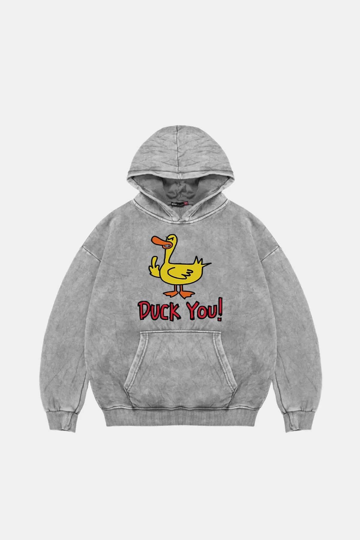 Duck You Baskılı Oversize Unisex Premium Yıkamalı Siyah Hoodie