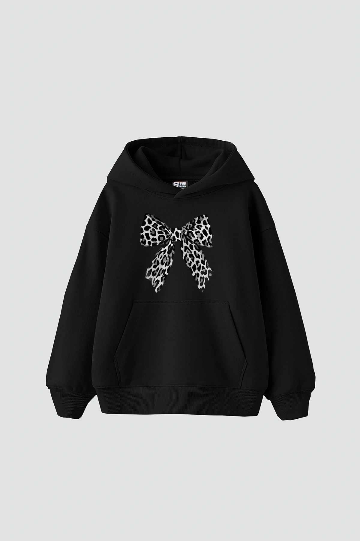 Fiyonk Leopar "V2"Baskılı Baskılı Oversize Unisex Premium Siyah Hoodie