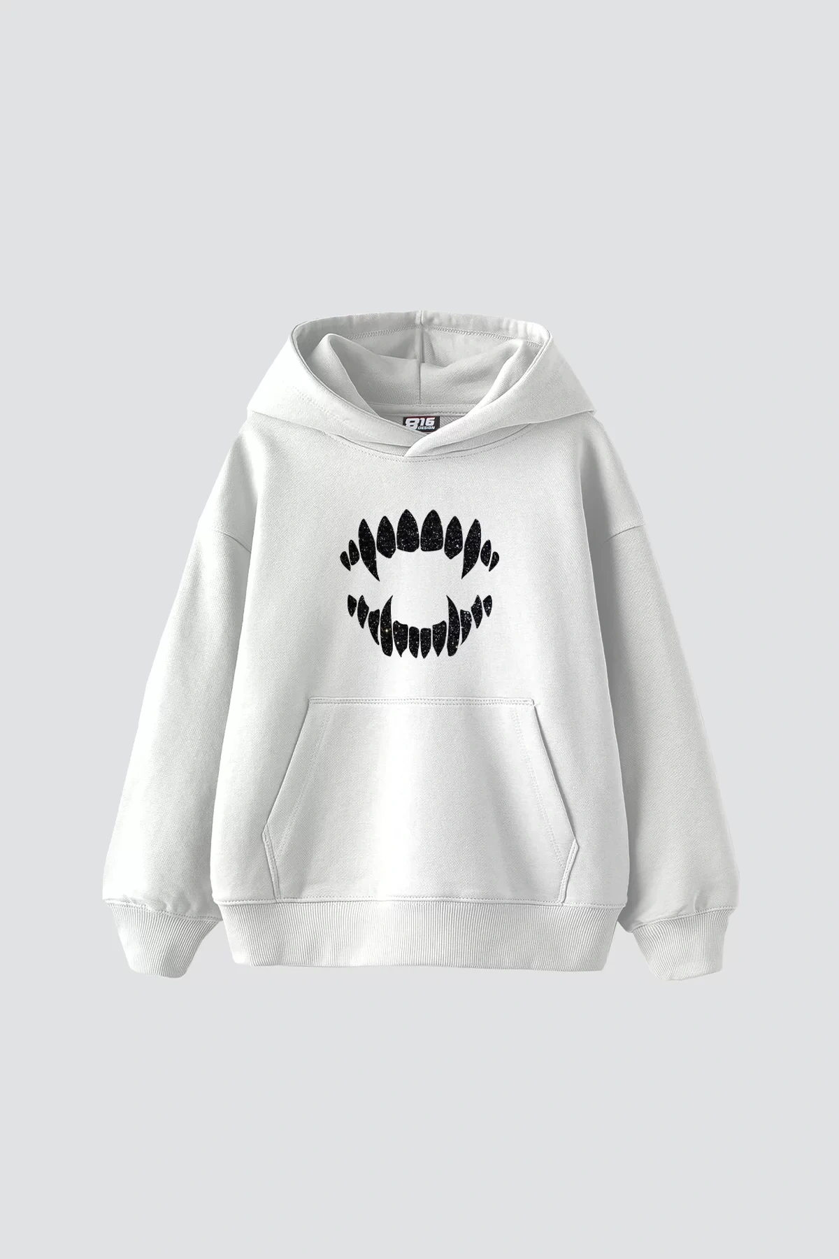 Shining Teeth Baskılı Oversize Unisex Premium Beyaz Hoodie
