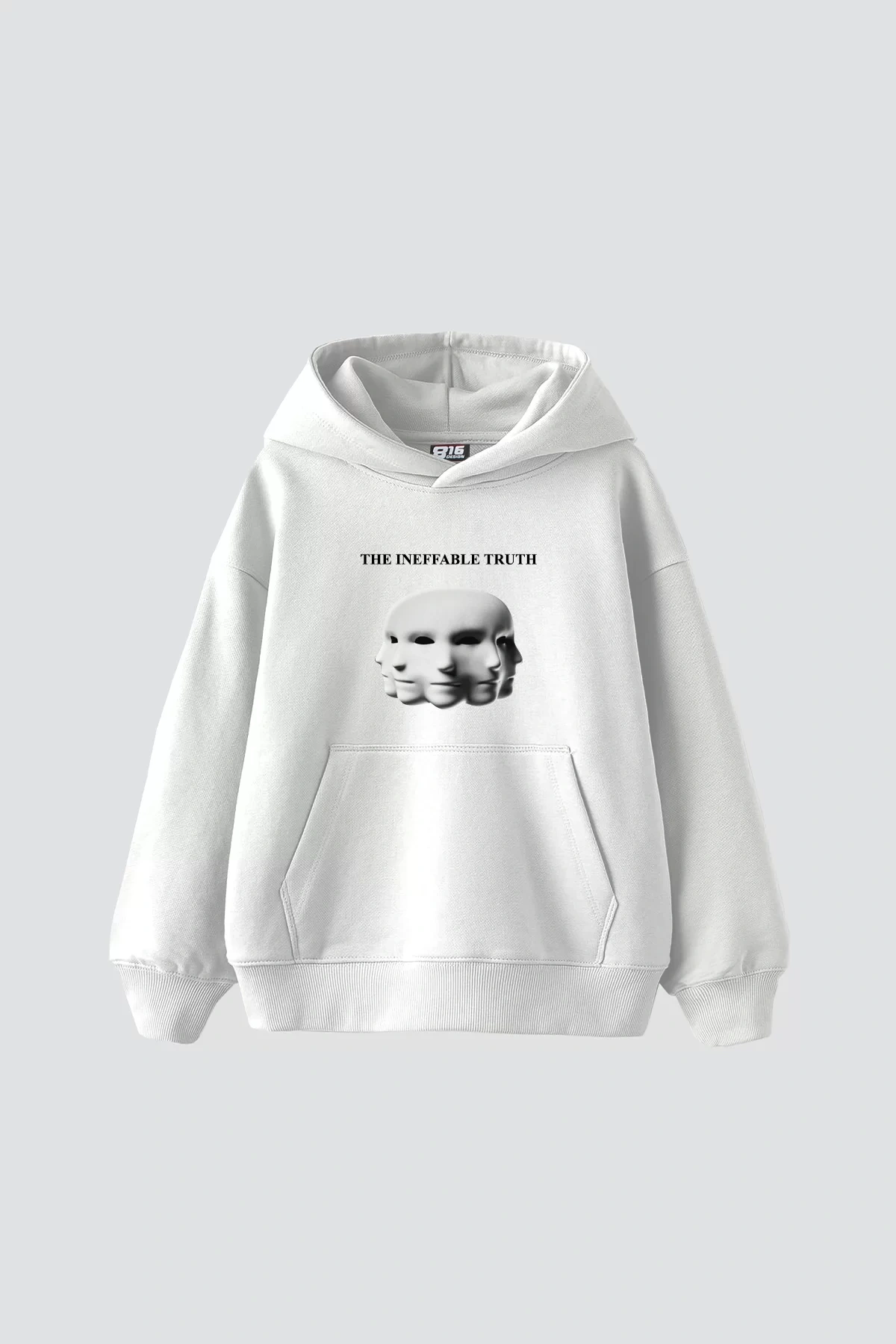 The Ineffable TruthBaskılı Oversize Unisex Premium Beyaz Hoodie