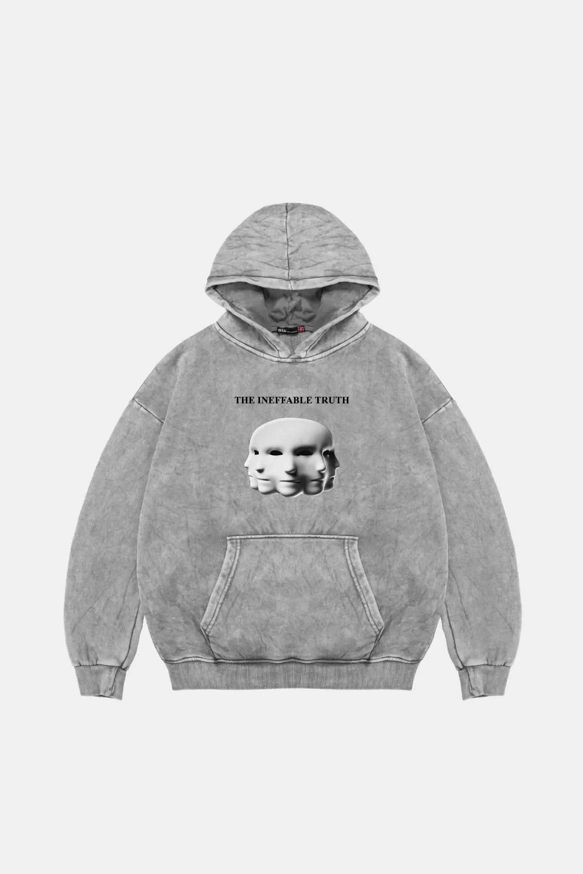 The Ineffable TruthBaskılı Oversize Unisex Premium Yıkamalı Beyaz Hoodie