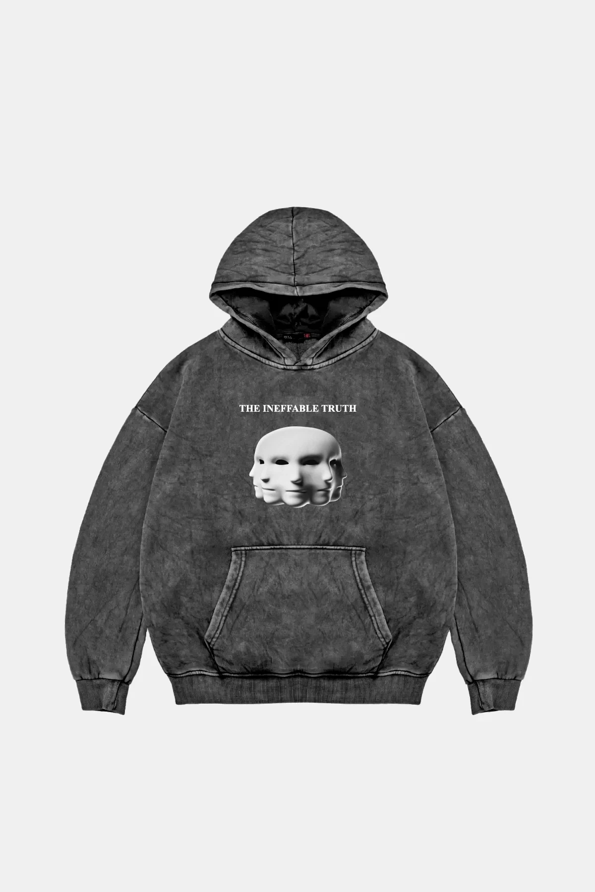 The Ineffable TruthBaskılı Oversize Unisex Premium Yıkamalı Siyah Hoodie