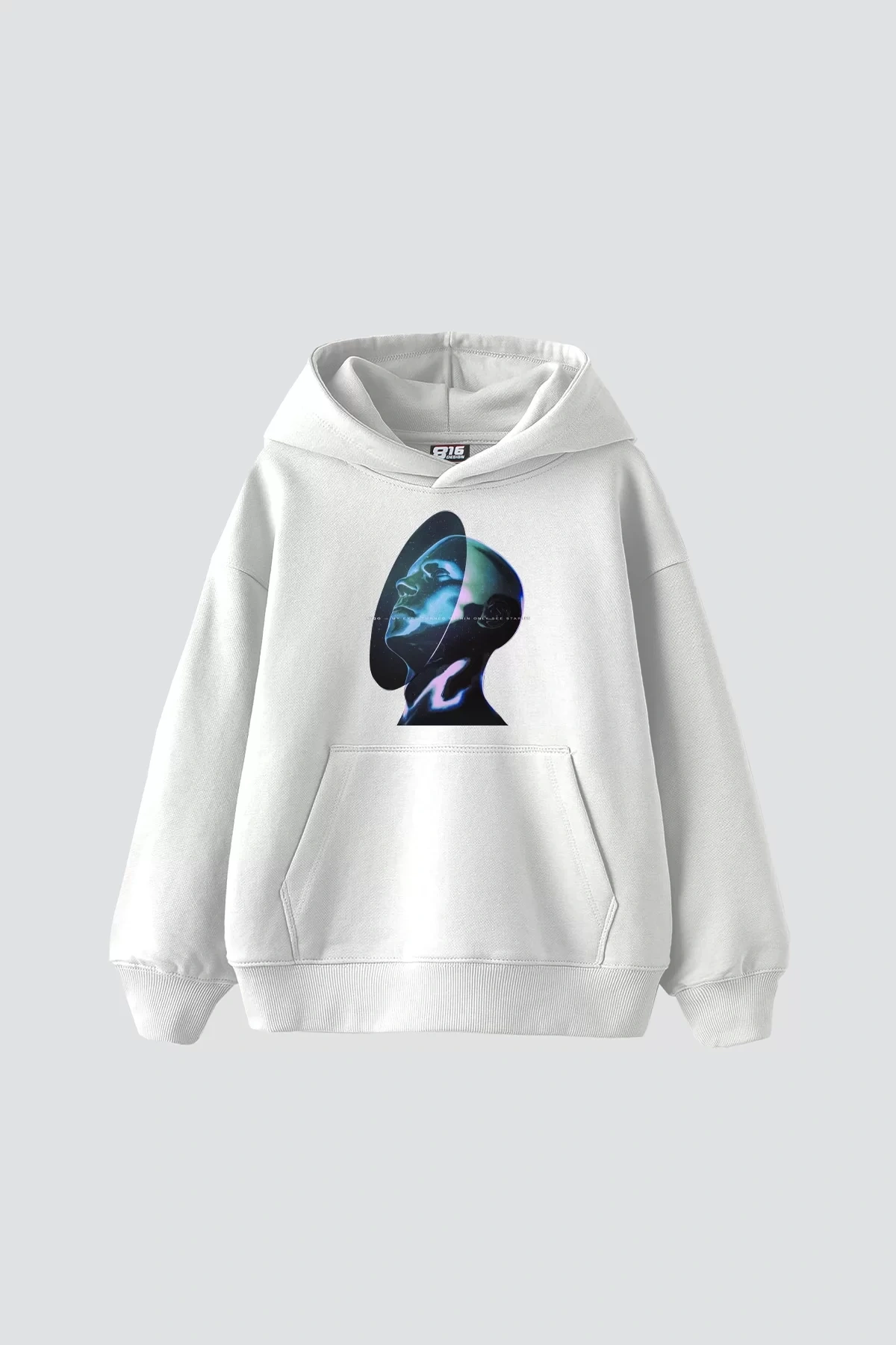 Universe Man Baskılı Baskılı Oversize Unisex Premium Beyaz Hoodie