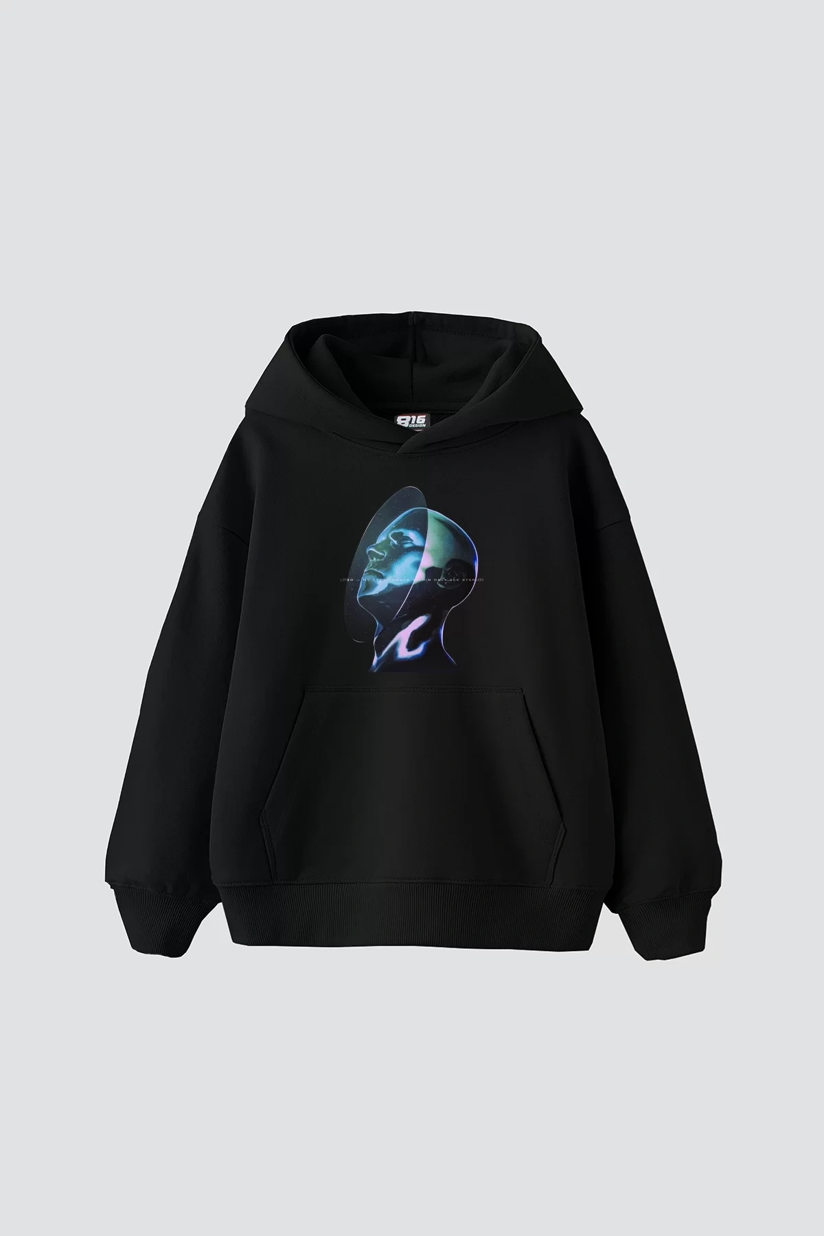 Universe Man Baskılı Baskılı Oversize Unisex Premium Siyah Hoodie