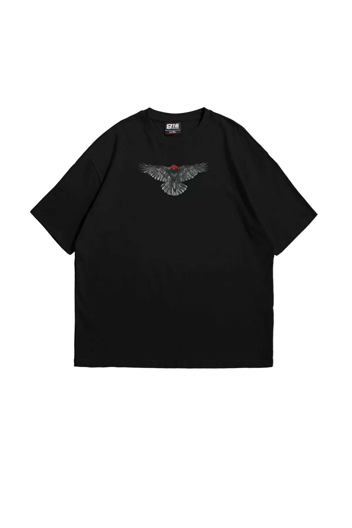 Defensive Crow Baskılı Premium Oversize Unisex Siyah Tshirt