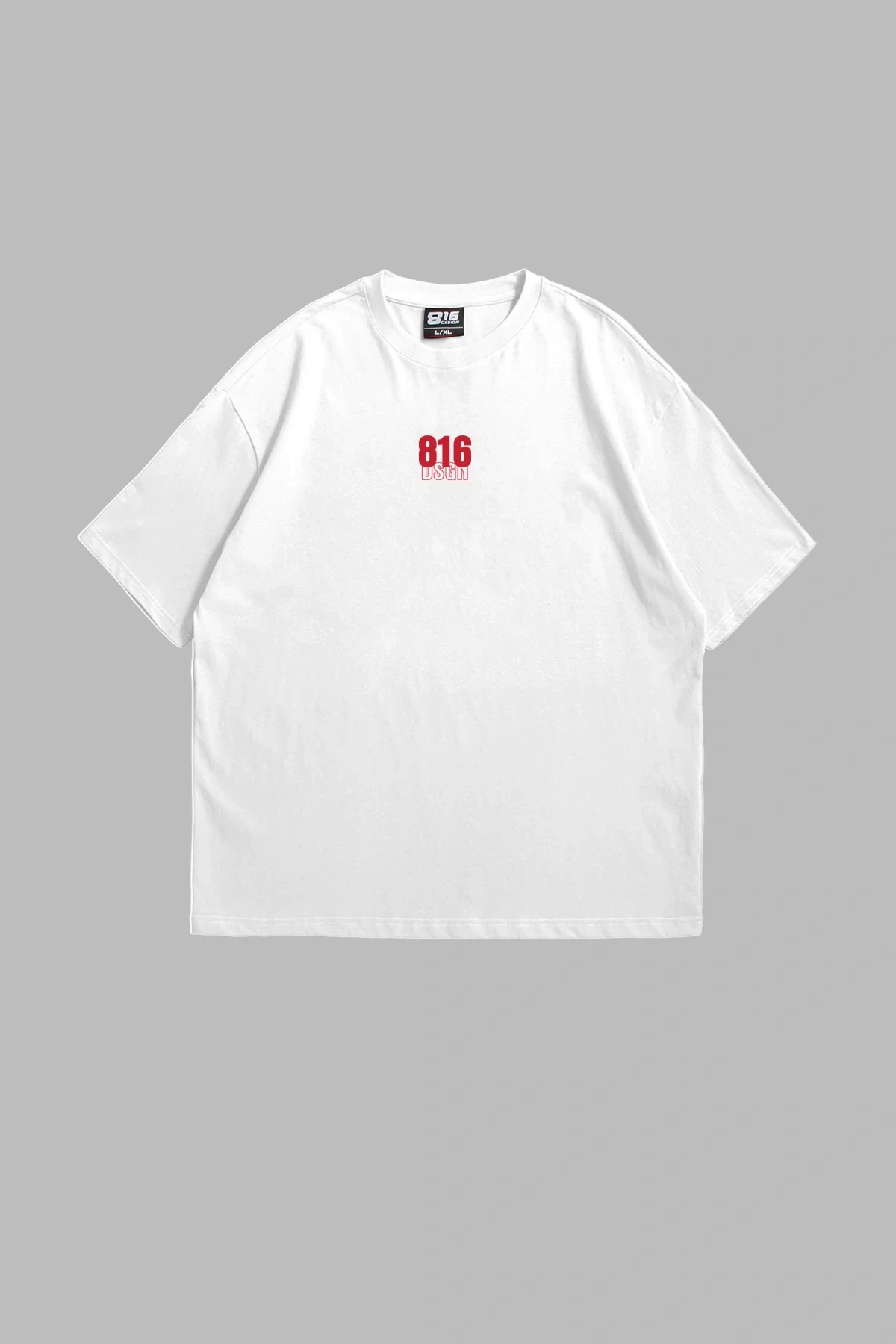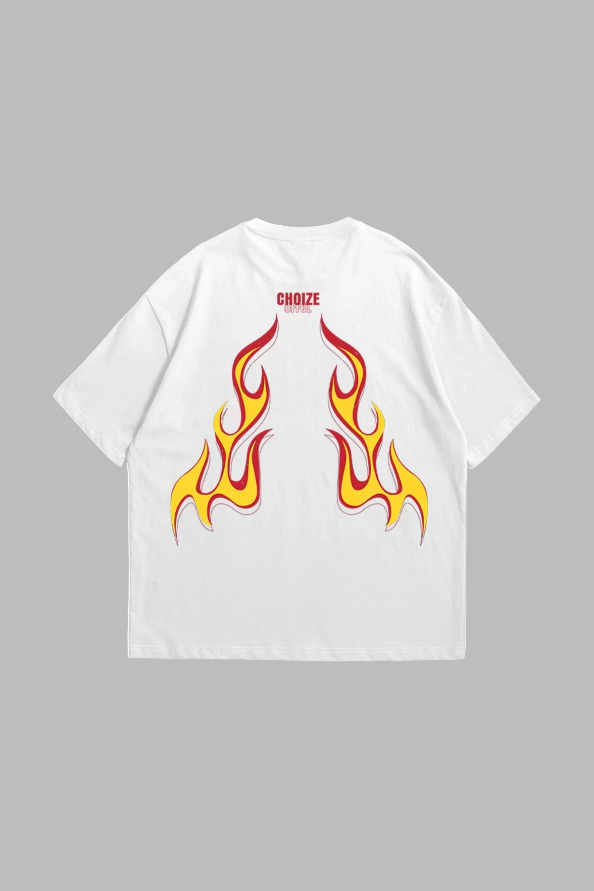 816 Dsgn Choize Flame Baskılı 24/1 Oversize Unisex Beyaz Tshirt