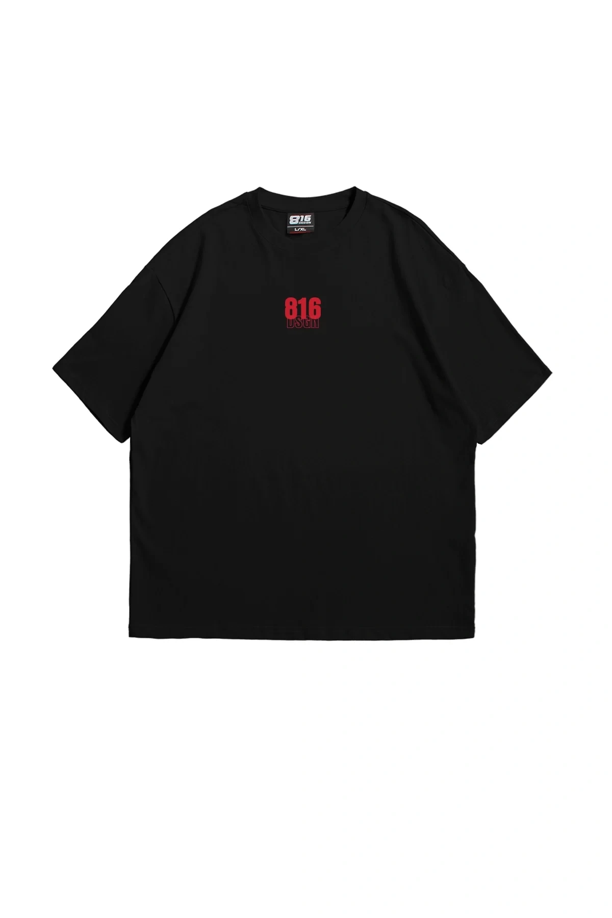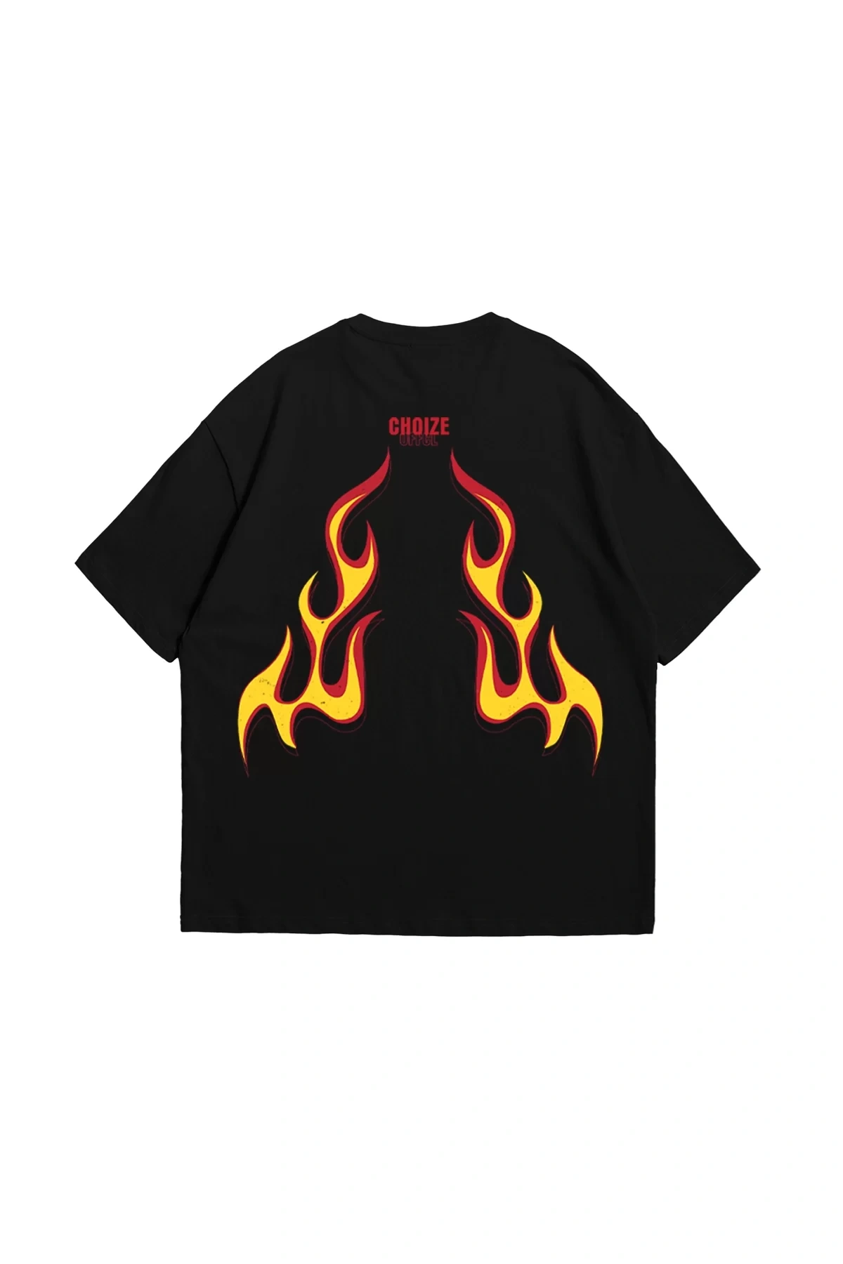 816 Dsgn Choize Flame Baskılı 24/1 Oversize Unisex Siyah Tshirt