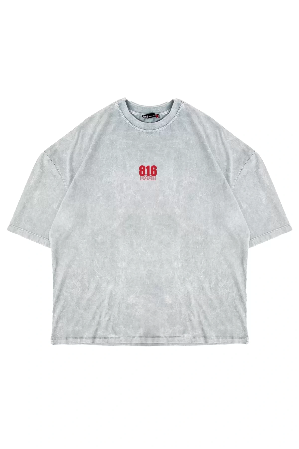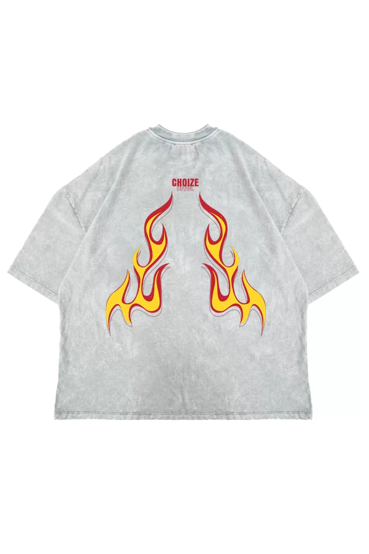 816 Dsgn Choize Flame Baskılı 24/1 Oversize Unisex Yıkamalı Beyaz Tshirt