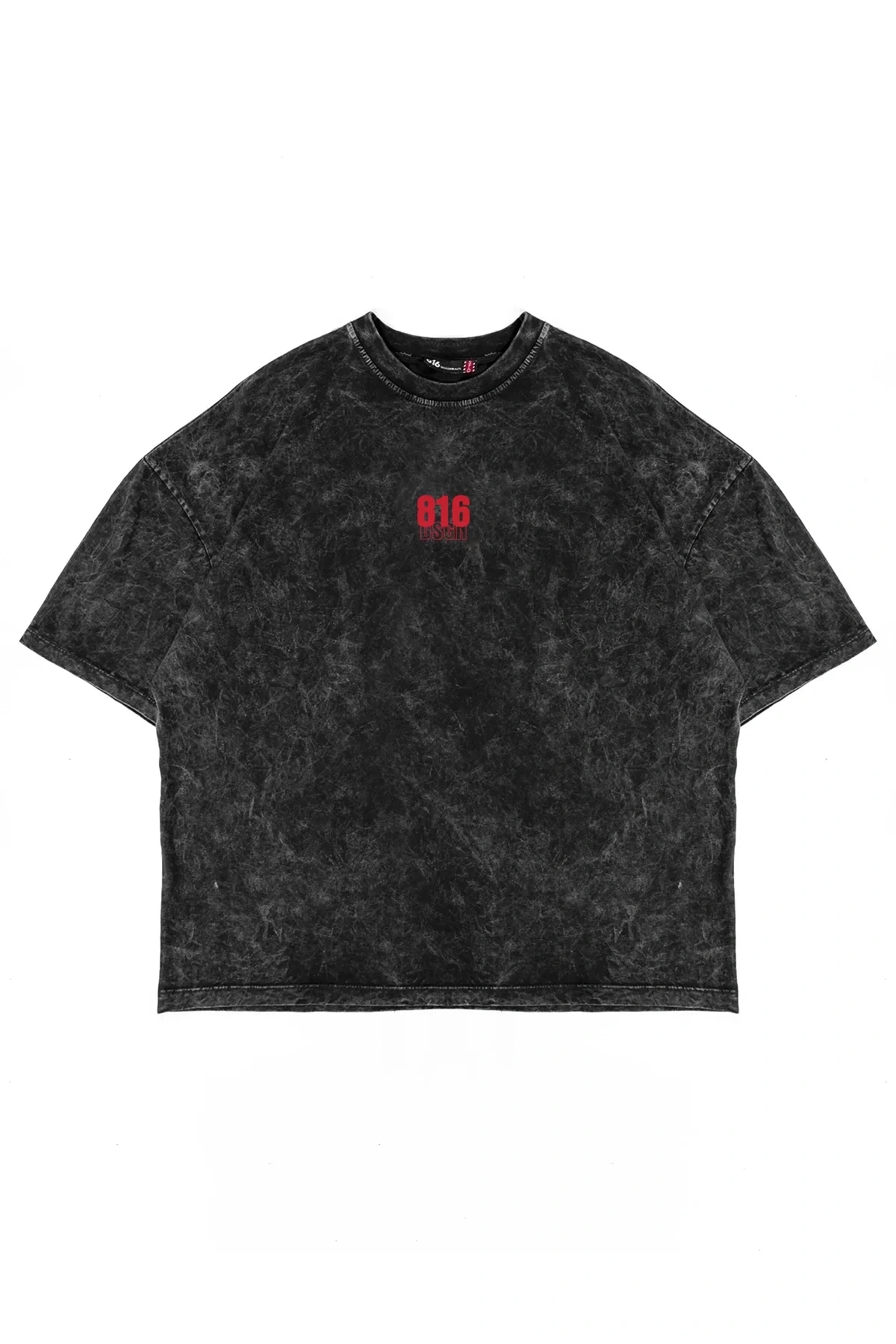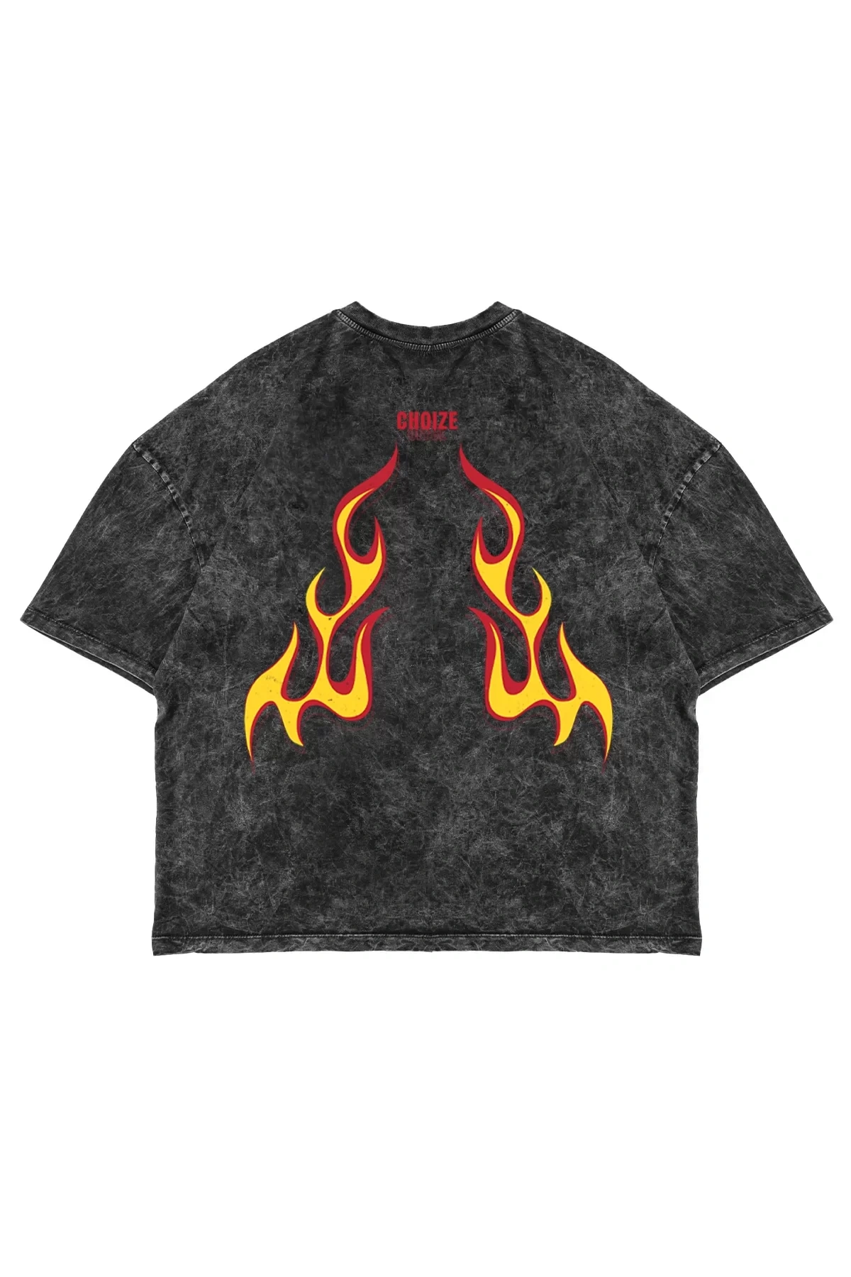 816 Dsgn Choize Flame Baskılı 24/1 Oversize Unisex Yıkamalı Siyah Tshirt