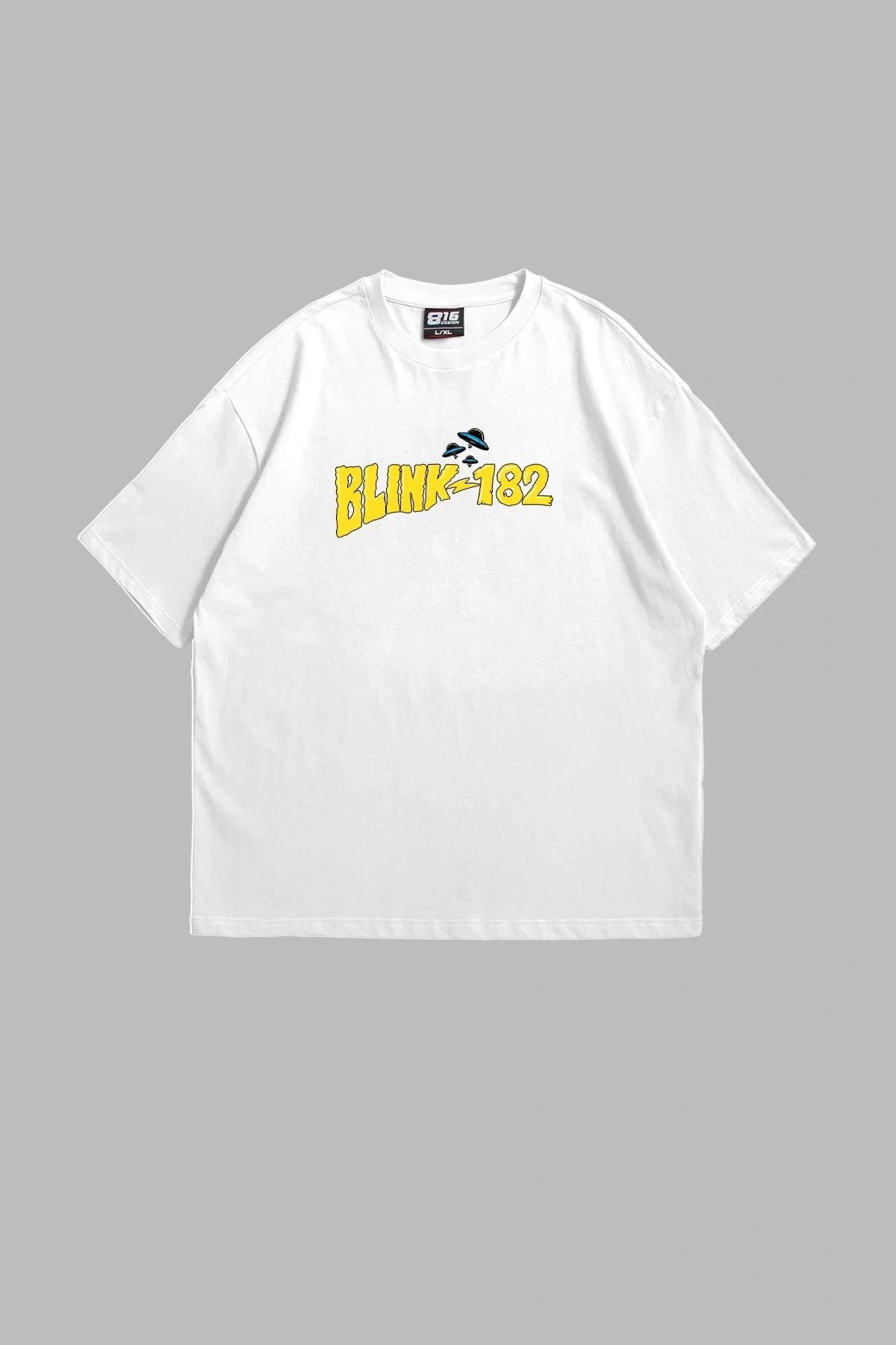 Blink 182 Baskılı Oversize Unisex 24/1 Oversize Unisex Beyaz Tshirt