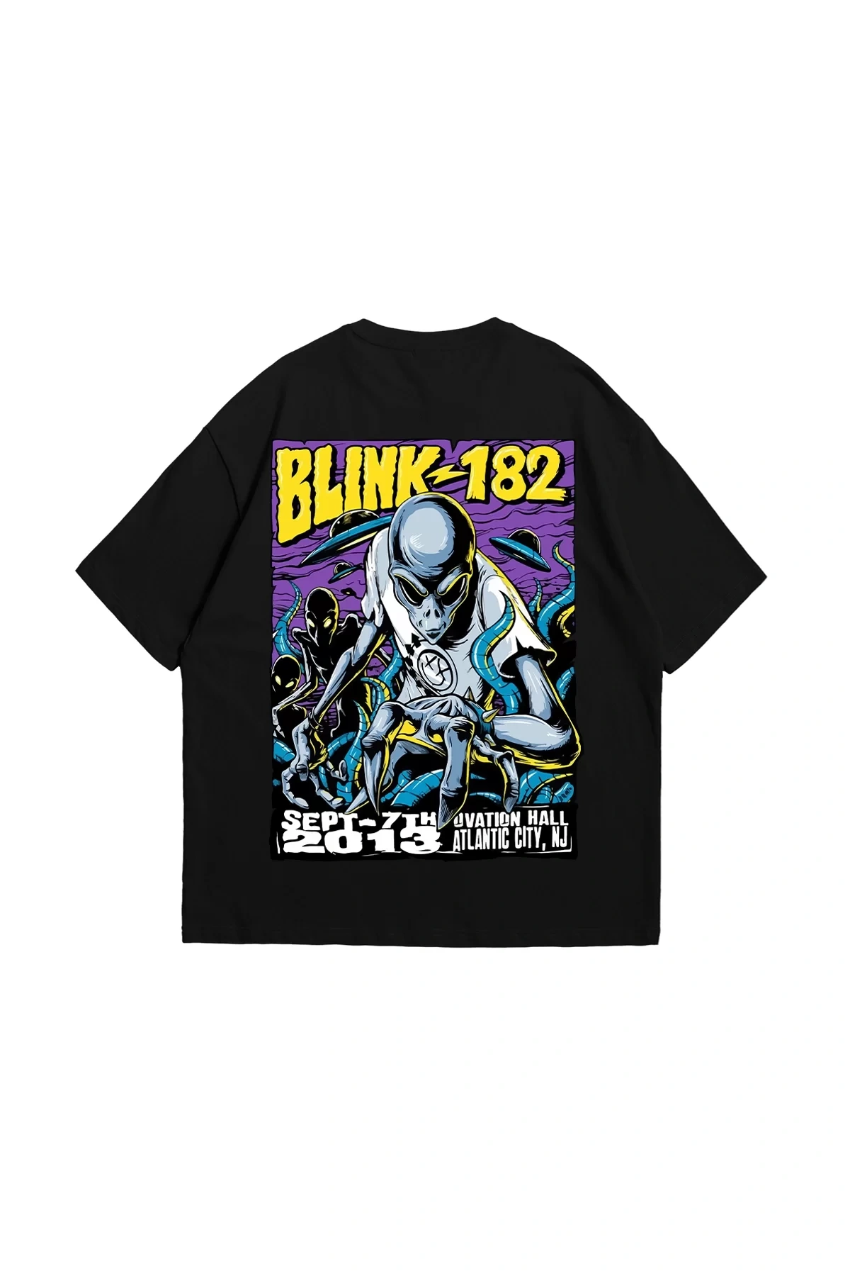 Blink 182 Baskılı Oversize Unisex 24/1 Oversize Unisex Siyah Tshirt