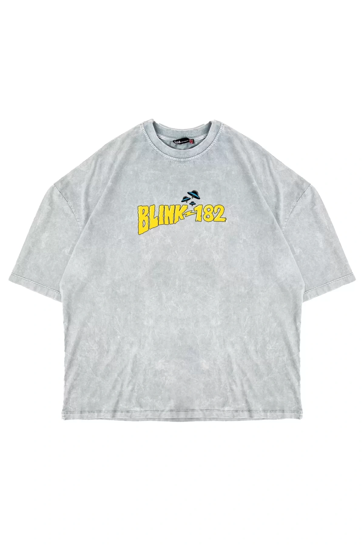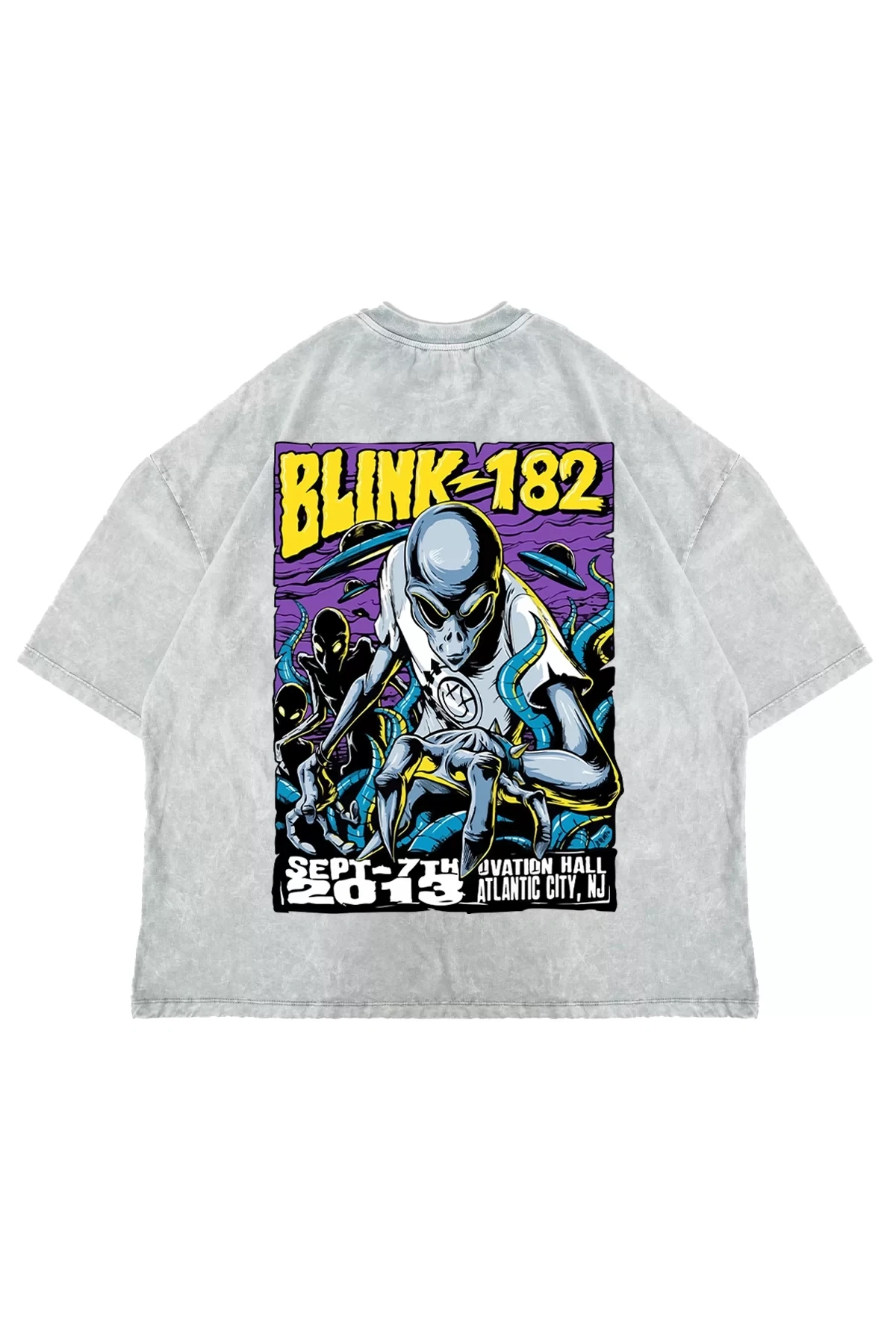 Blink 182 Baskılı Oversize Unisex 24/1 Oversize Unisex Yıkamalı Beyaz Tshirt