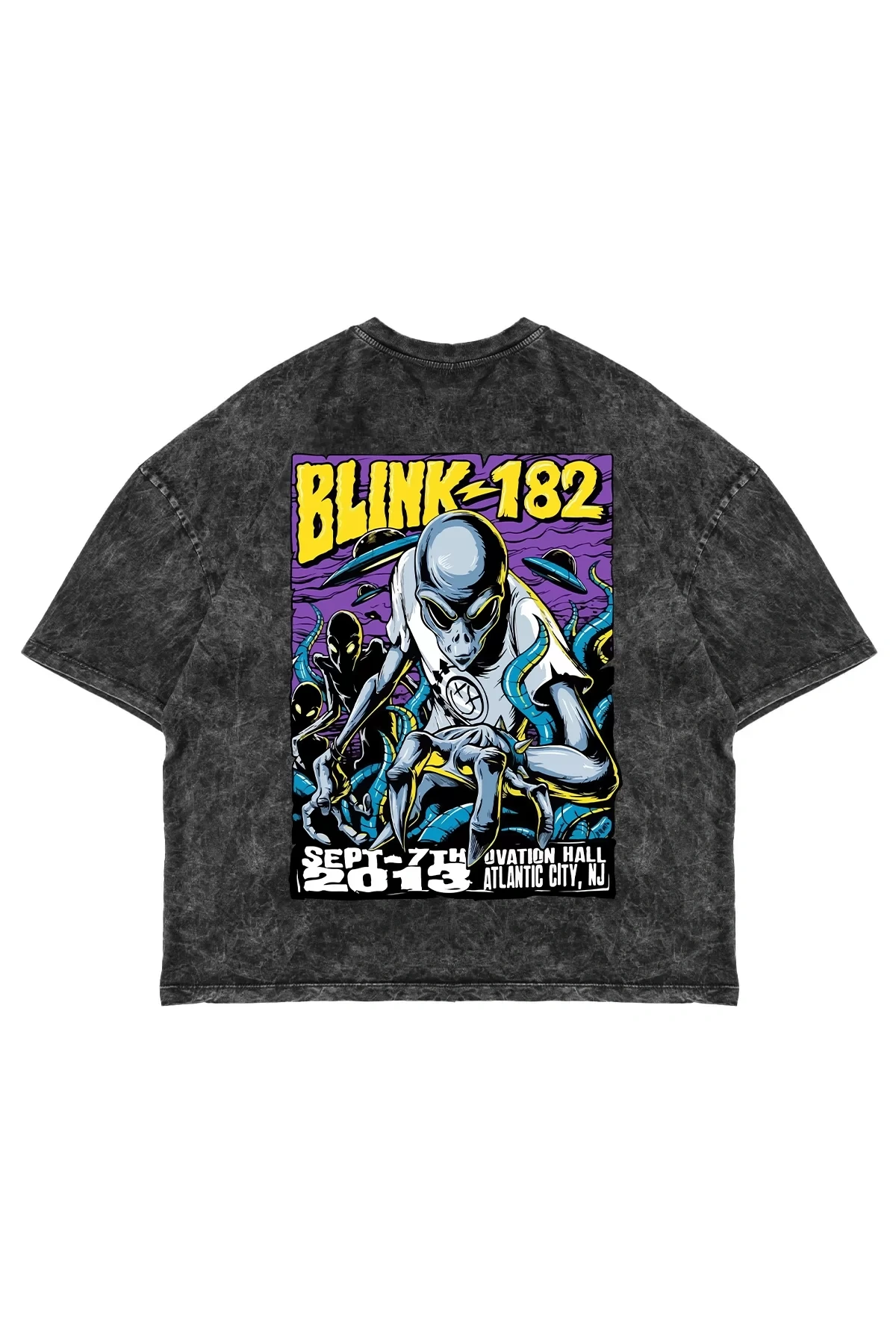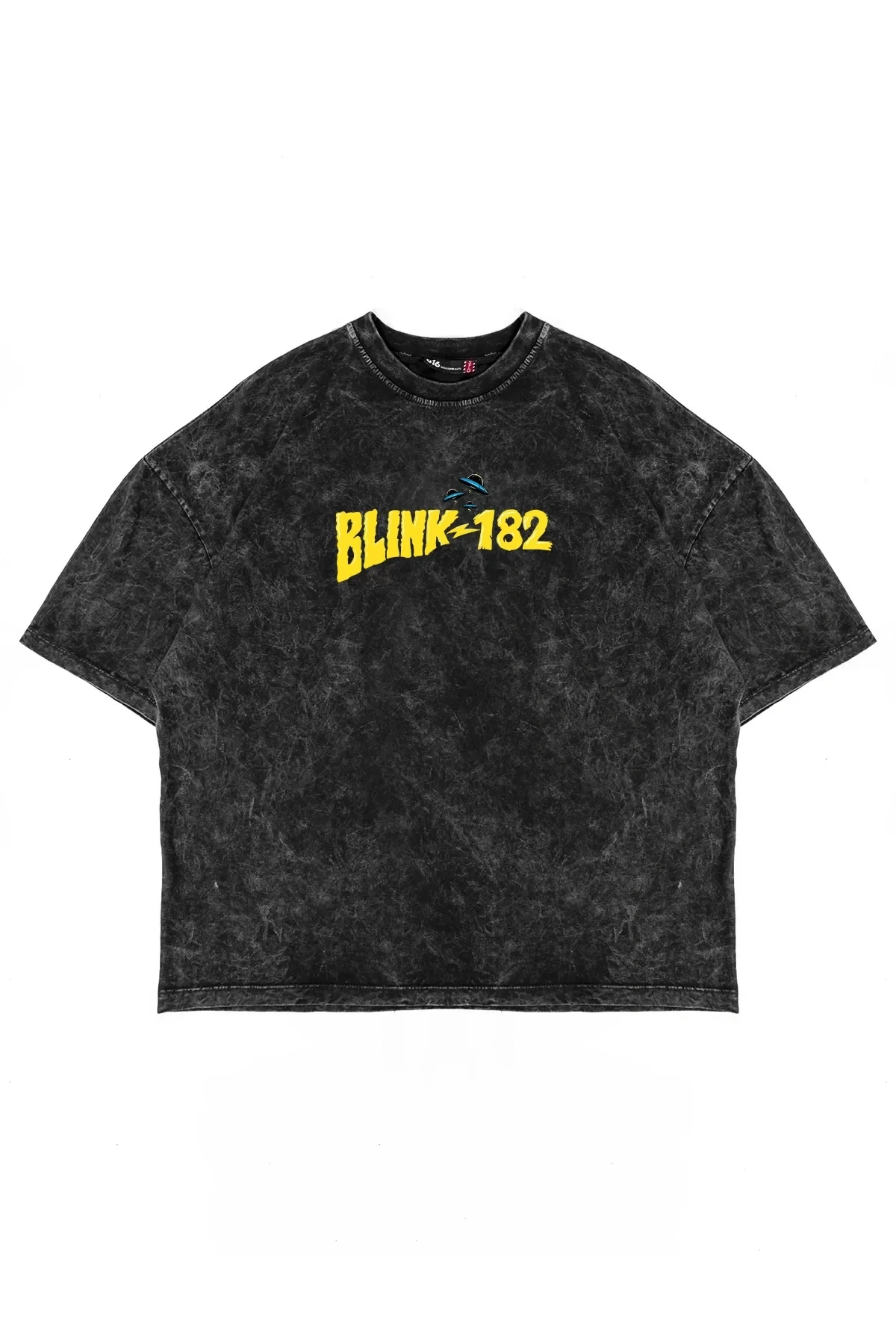 Blink 182 Baskılı Oversize Unisex 24/1 Oversize Unisex Yıkamalı Siyah Tshirt