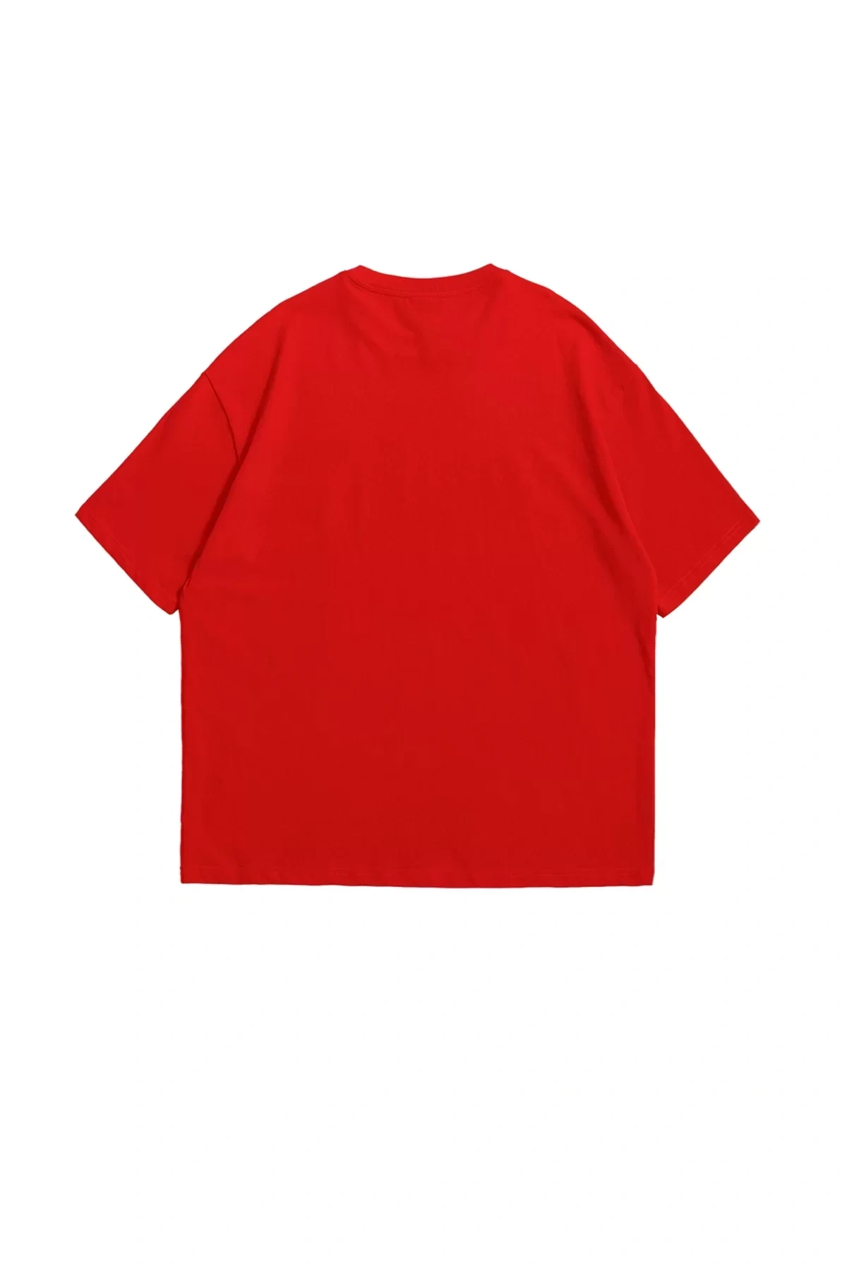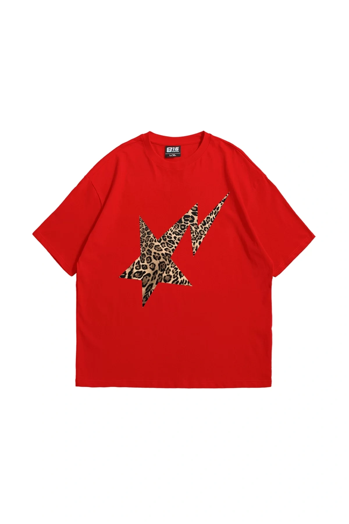 Leopar Falling Star Baskılı Oversize Unisex Kırmızı shirt