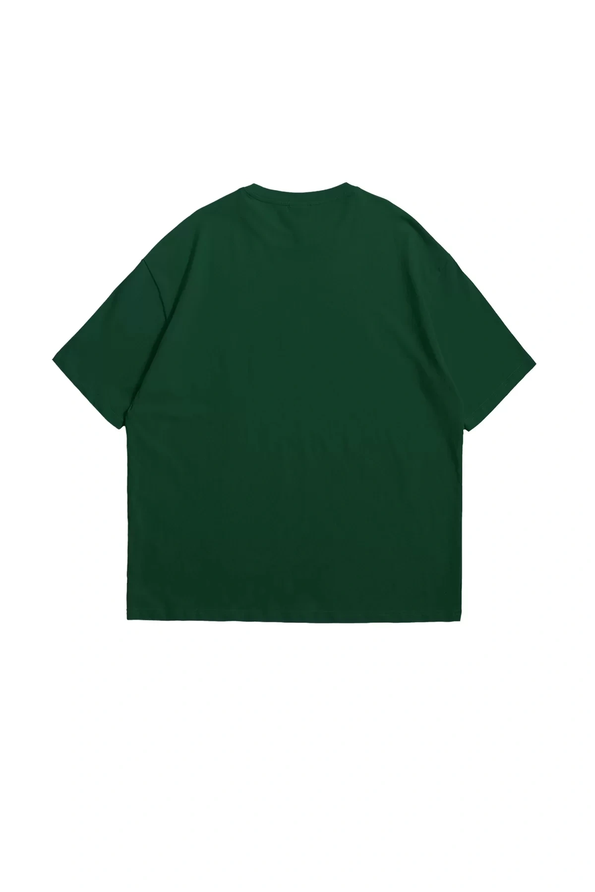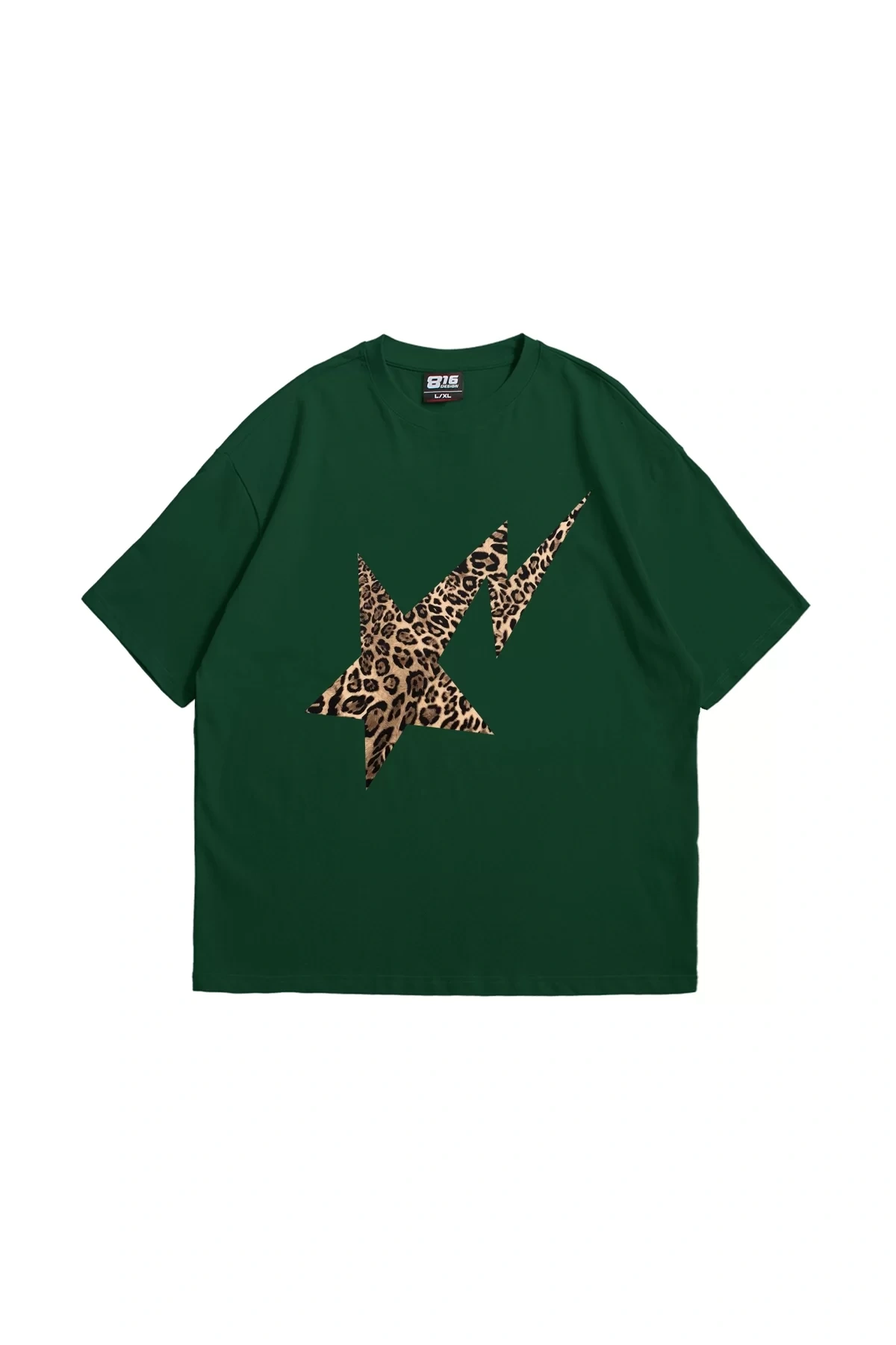 Leopar Falling Star Baskılı Oversize Unisex Yeşil shirt