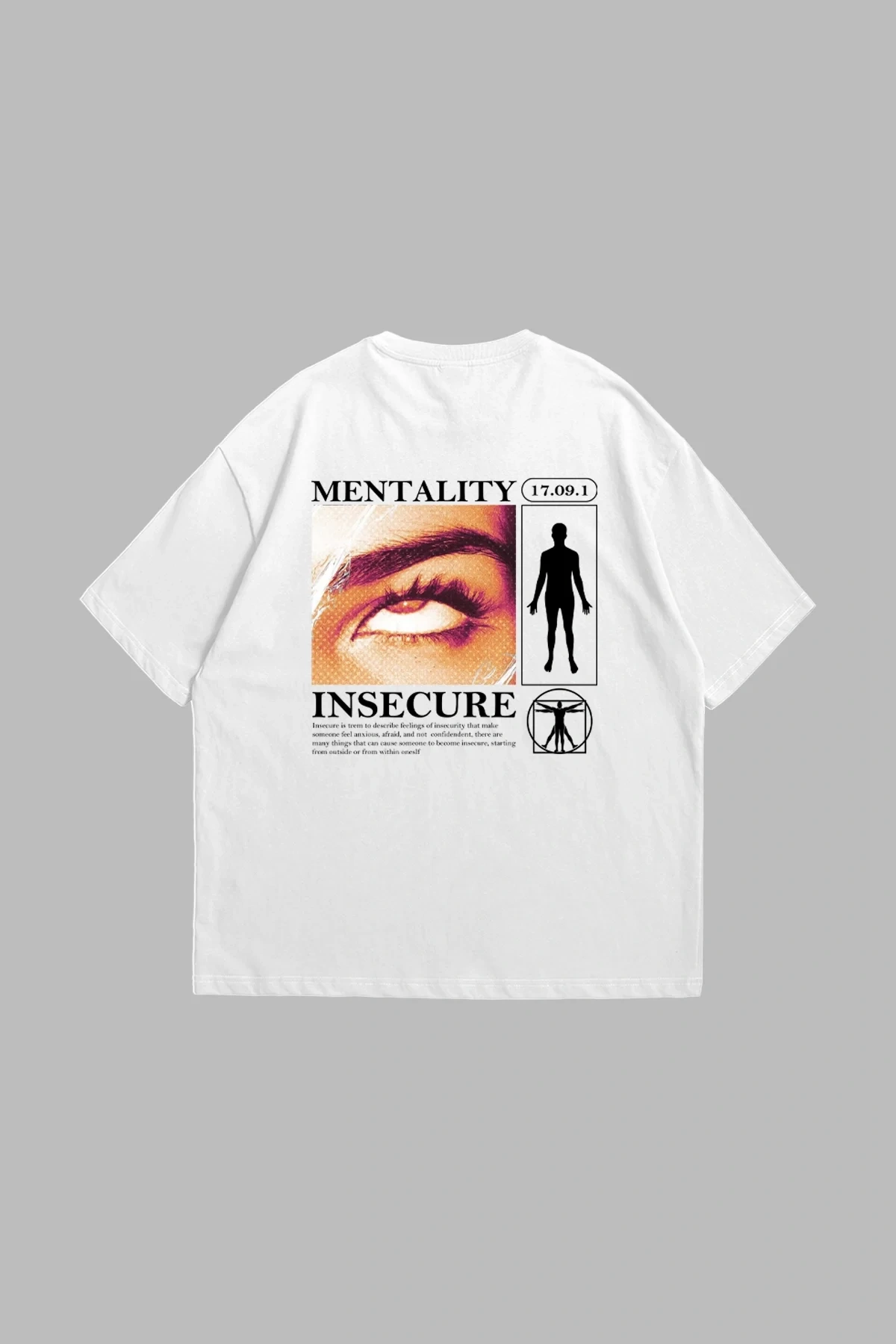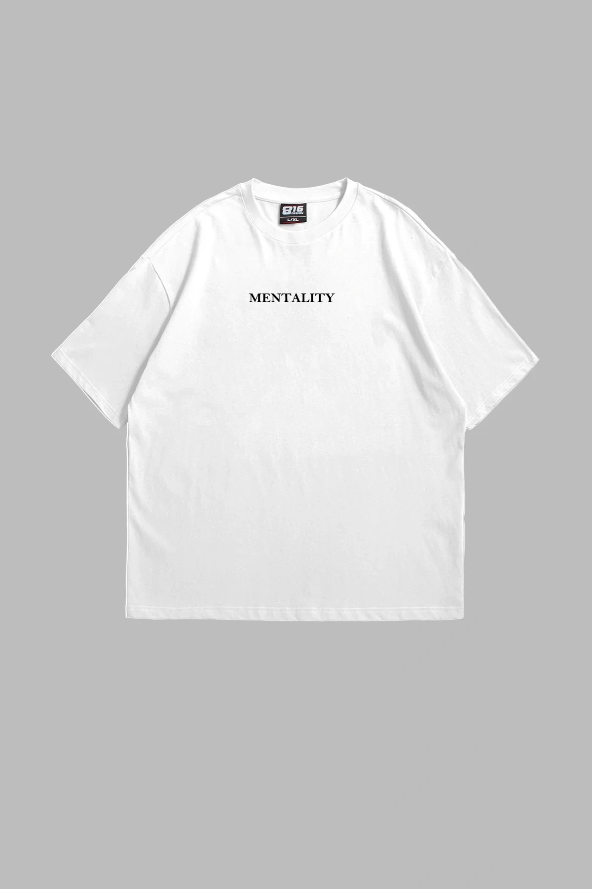 Mentality Baskılı 24/1 Oversize Unisex Beyaz Tshirt