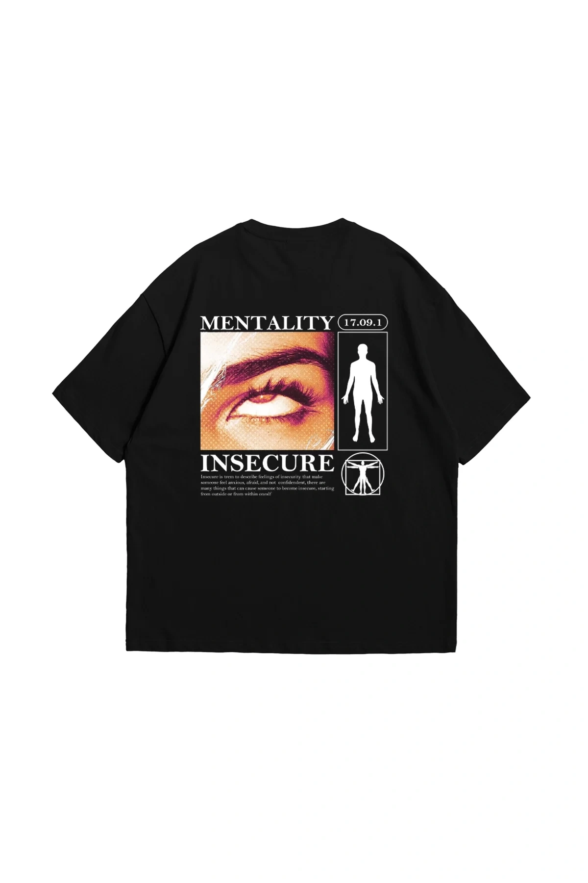 Mentality Baskılı 24/1 Oversize Unisex Siyah Tshirt
