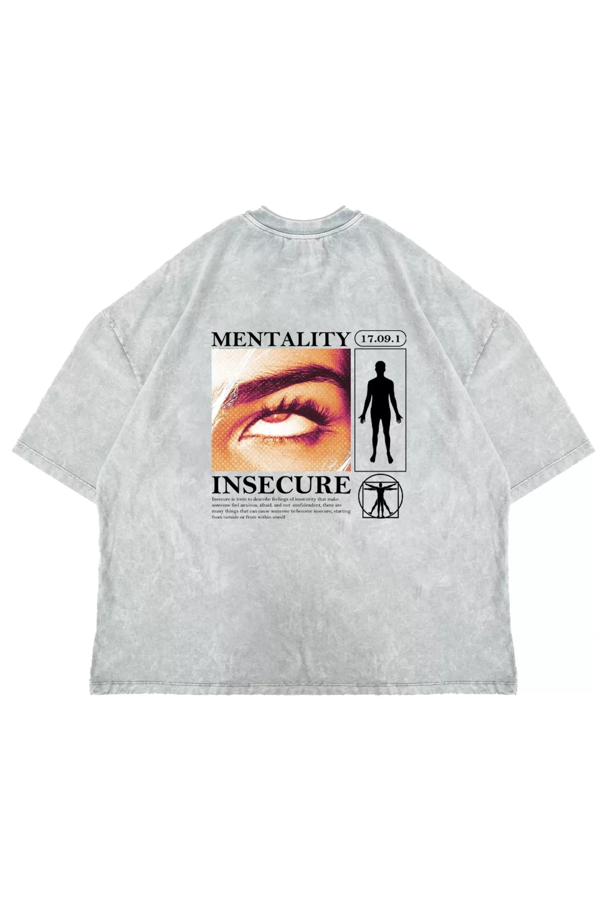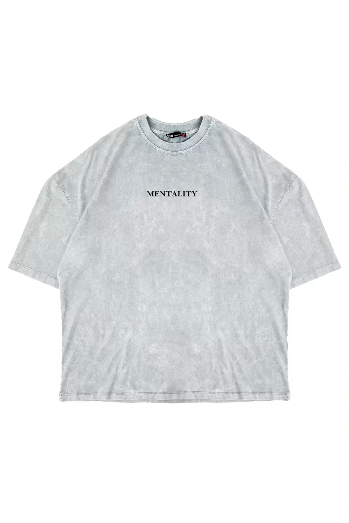 Mentality Baskılı 24/1 Oversize Unisex Yıkamalı Beyaz Tshirt