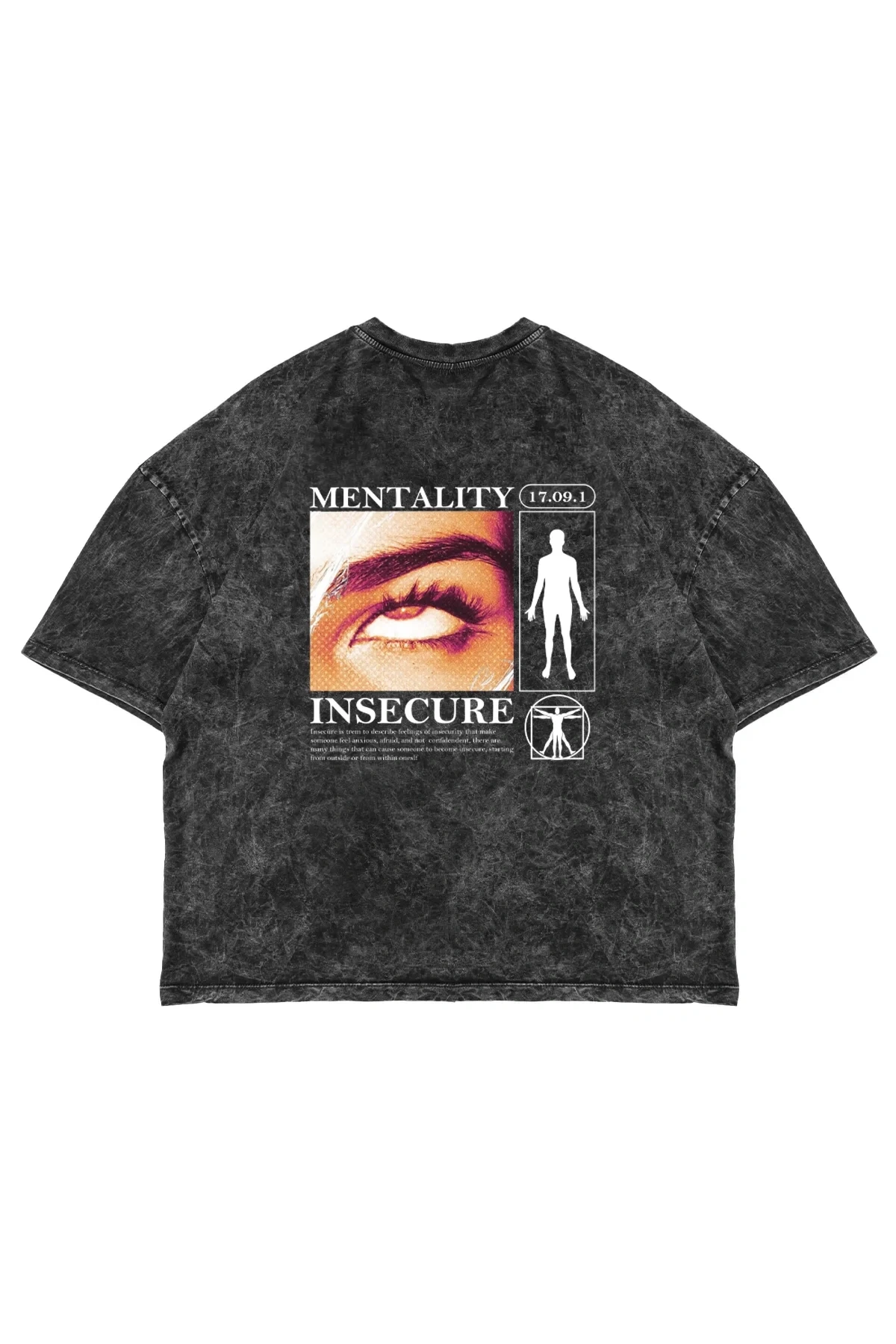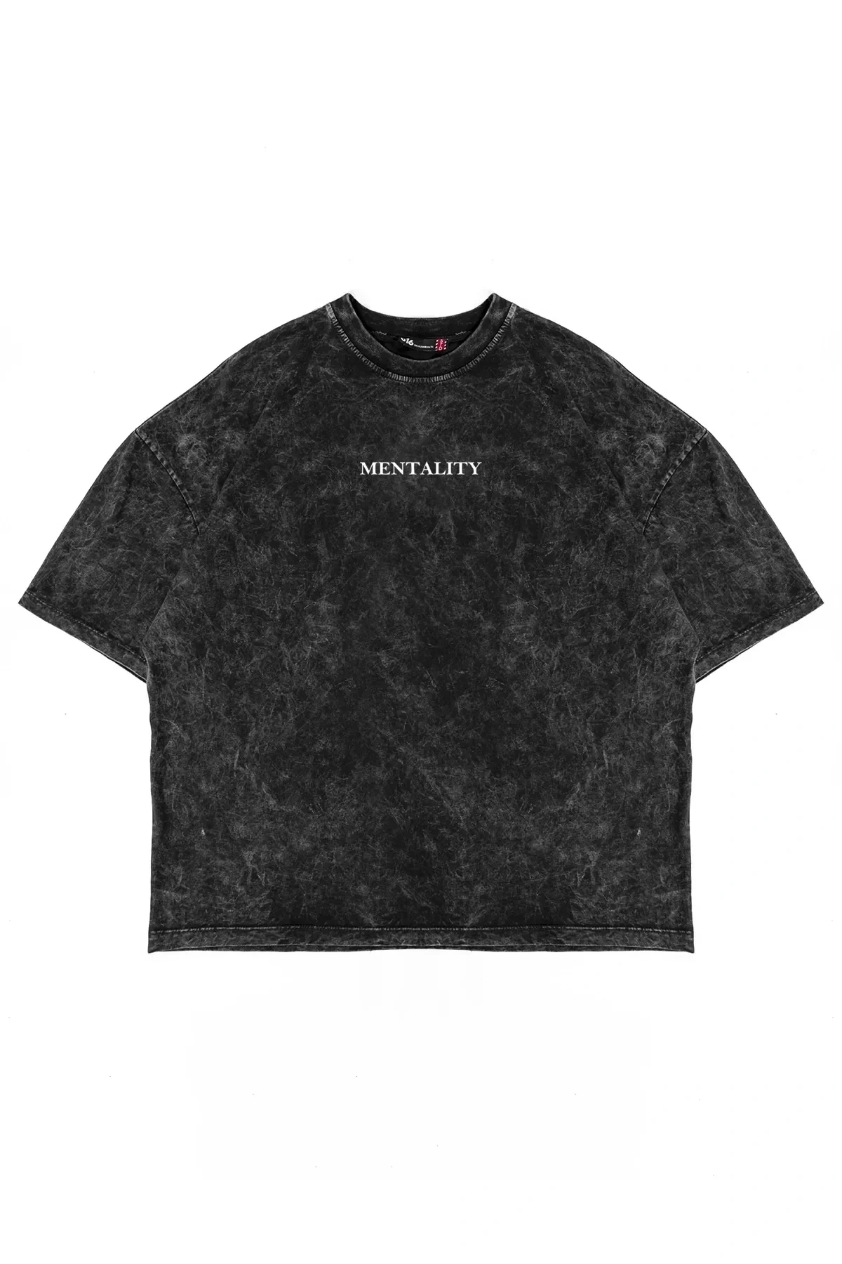 Mentality Baskılı 24/1 Oversize Unisex Yıkamalı Siyah Tshirt