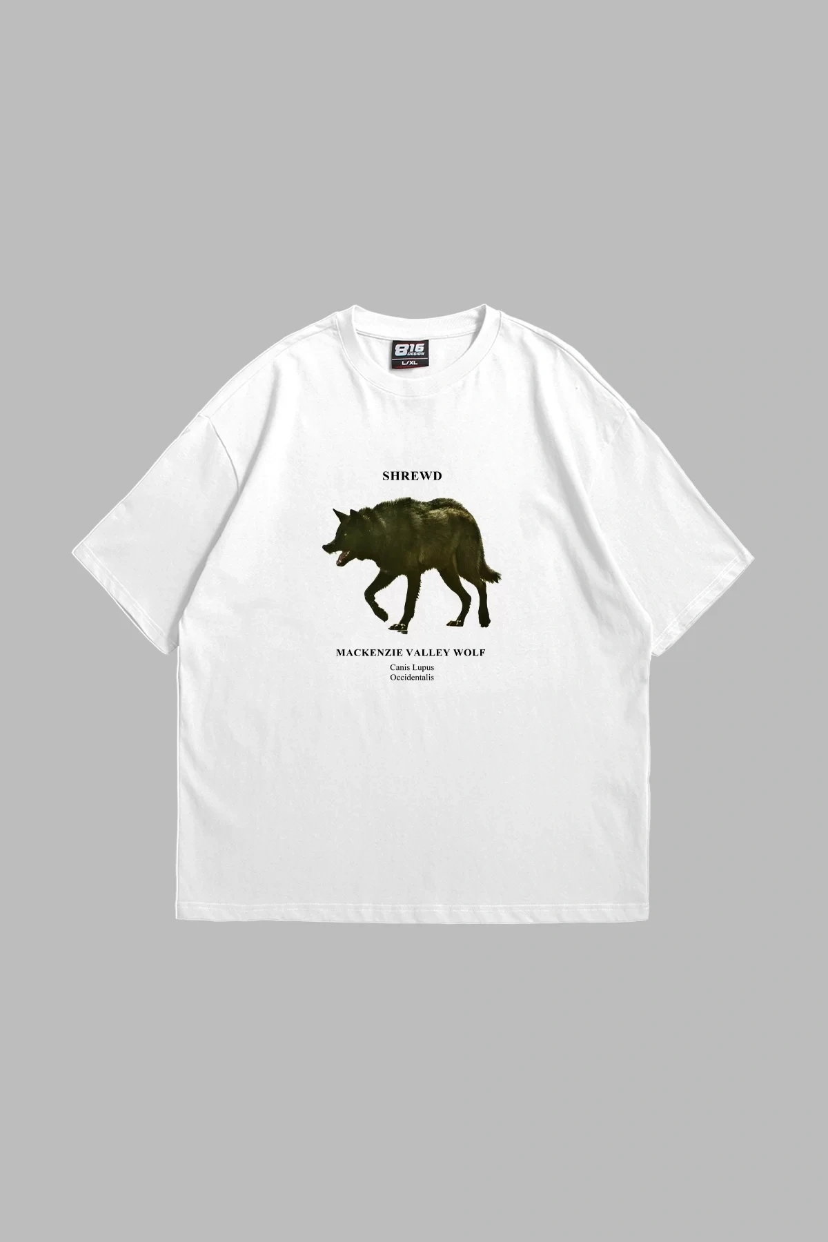 Walley Wolf Baskılı Oversize Unisex Beyaz Tshirt