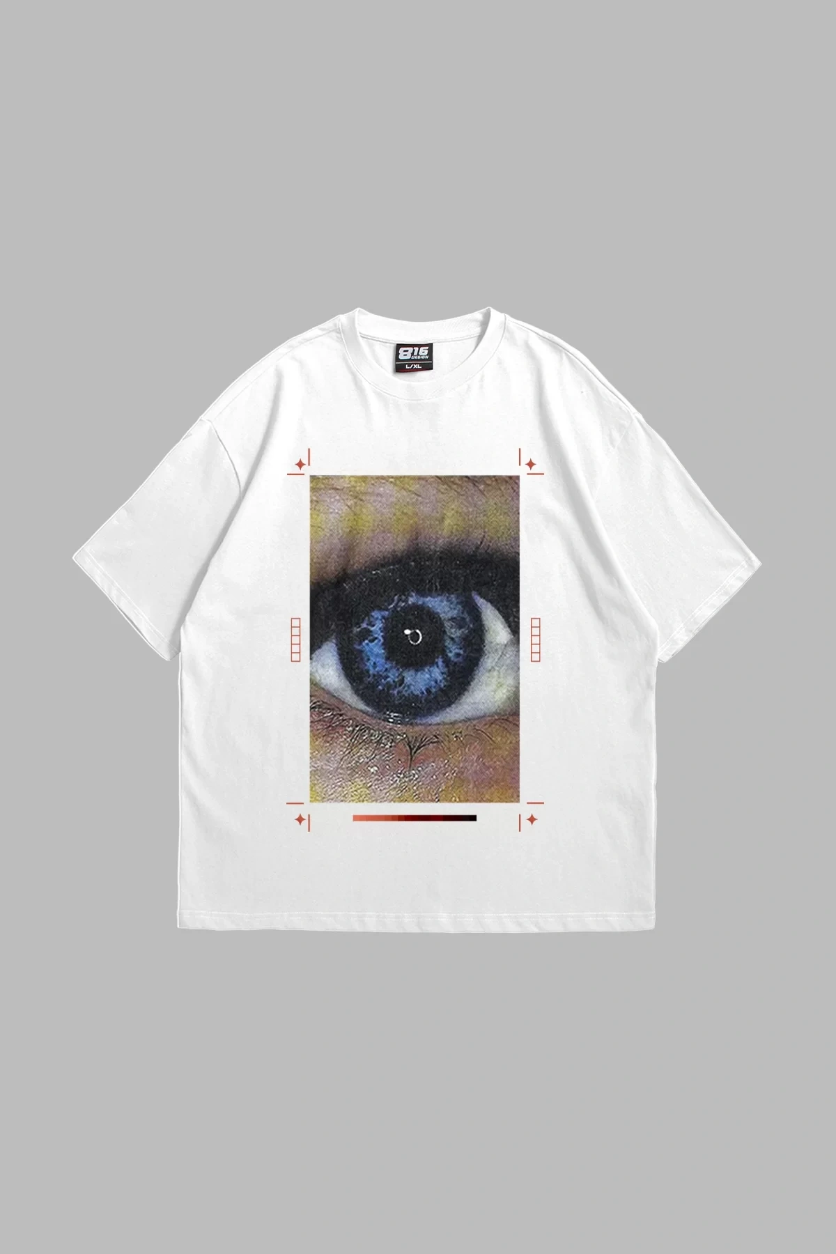 Y2K Eyes Baskılı 24/1 Oversize Unisex Beyaz Tshirt
