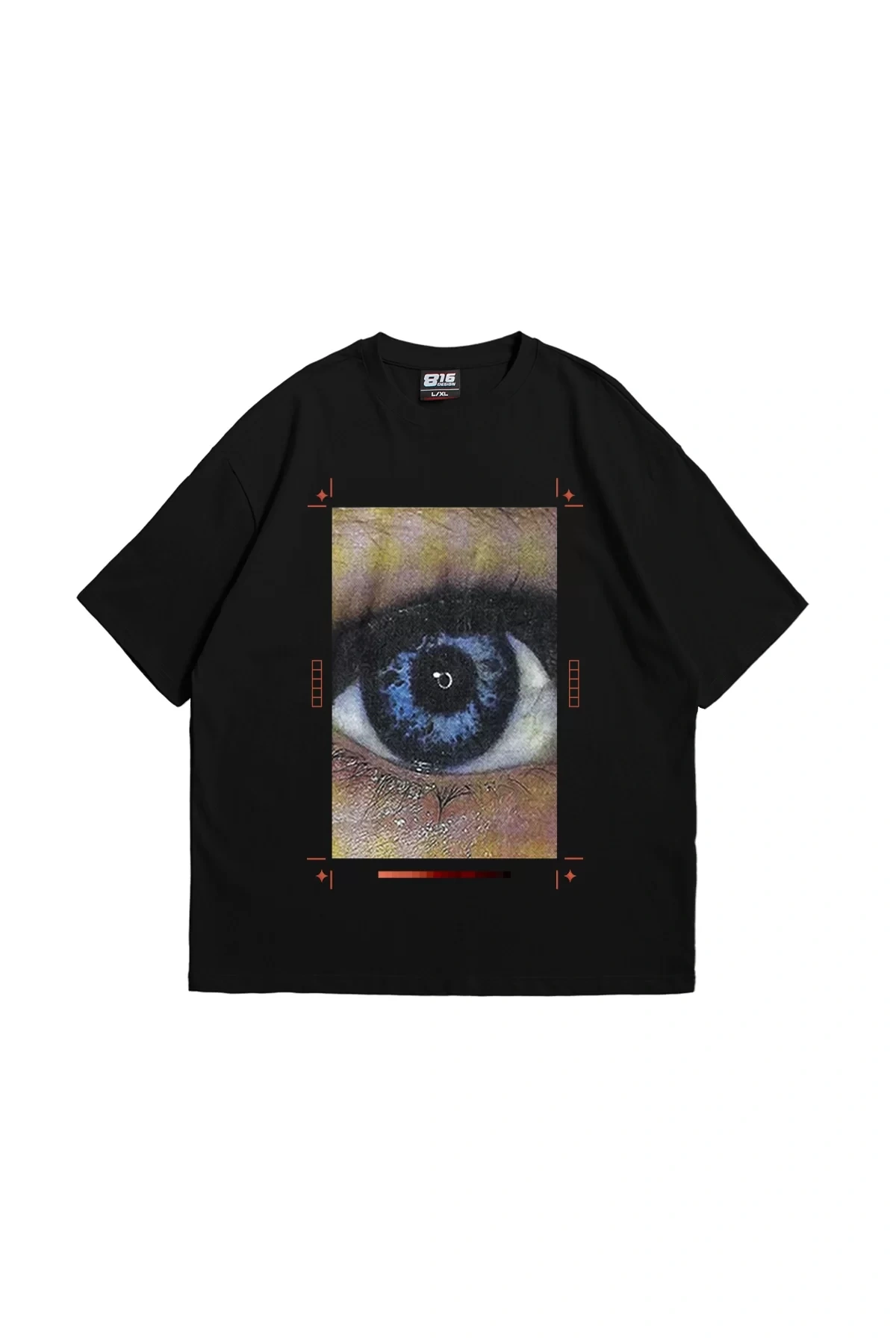 Y2K Eyes Baskılı 24/1 Oversize Unisex Siyah Tshirt