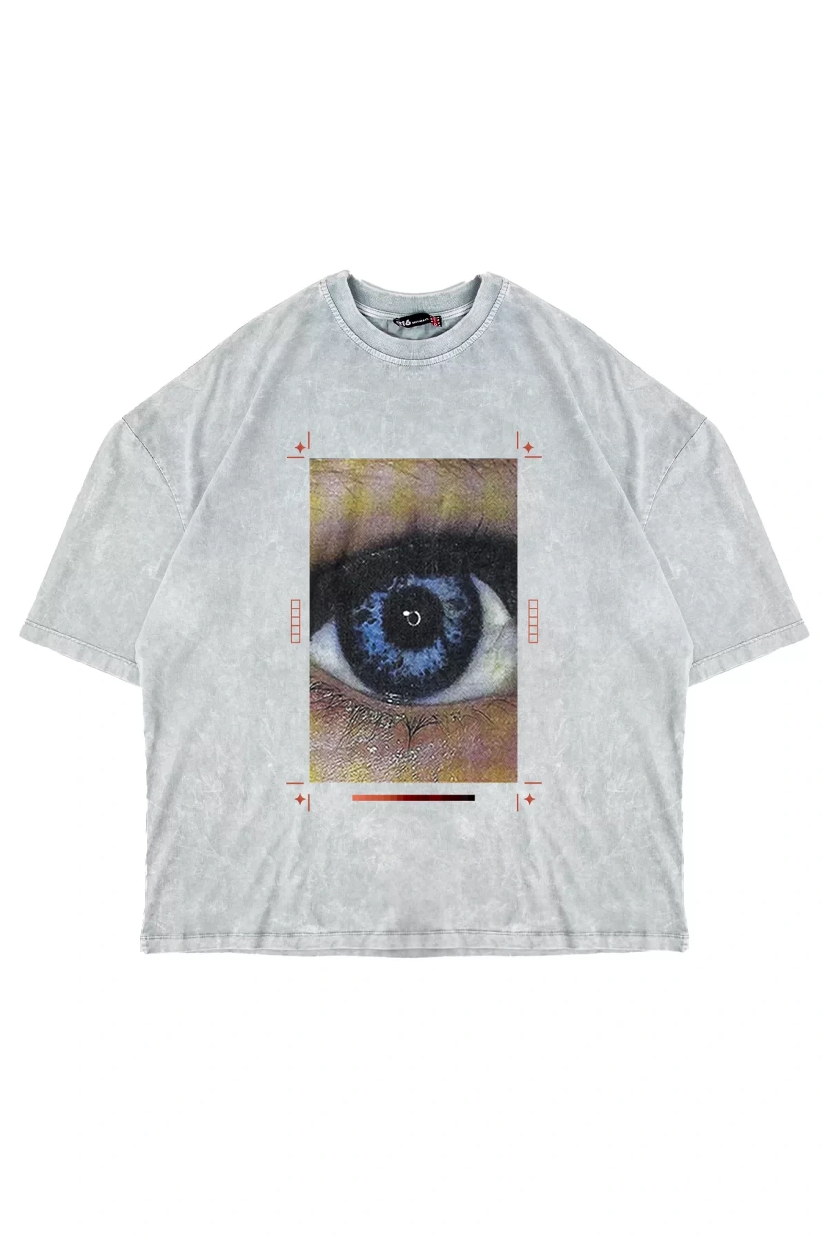 Y2K Eyes Baskılı 24/1 Oversize Unisex Yıkamalı Beyaz Tshirt