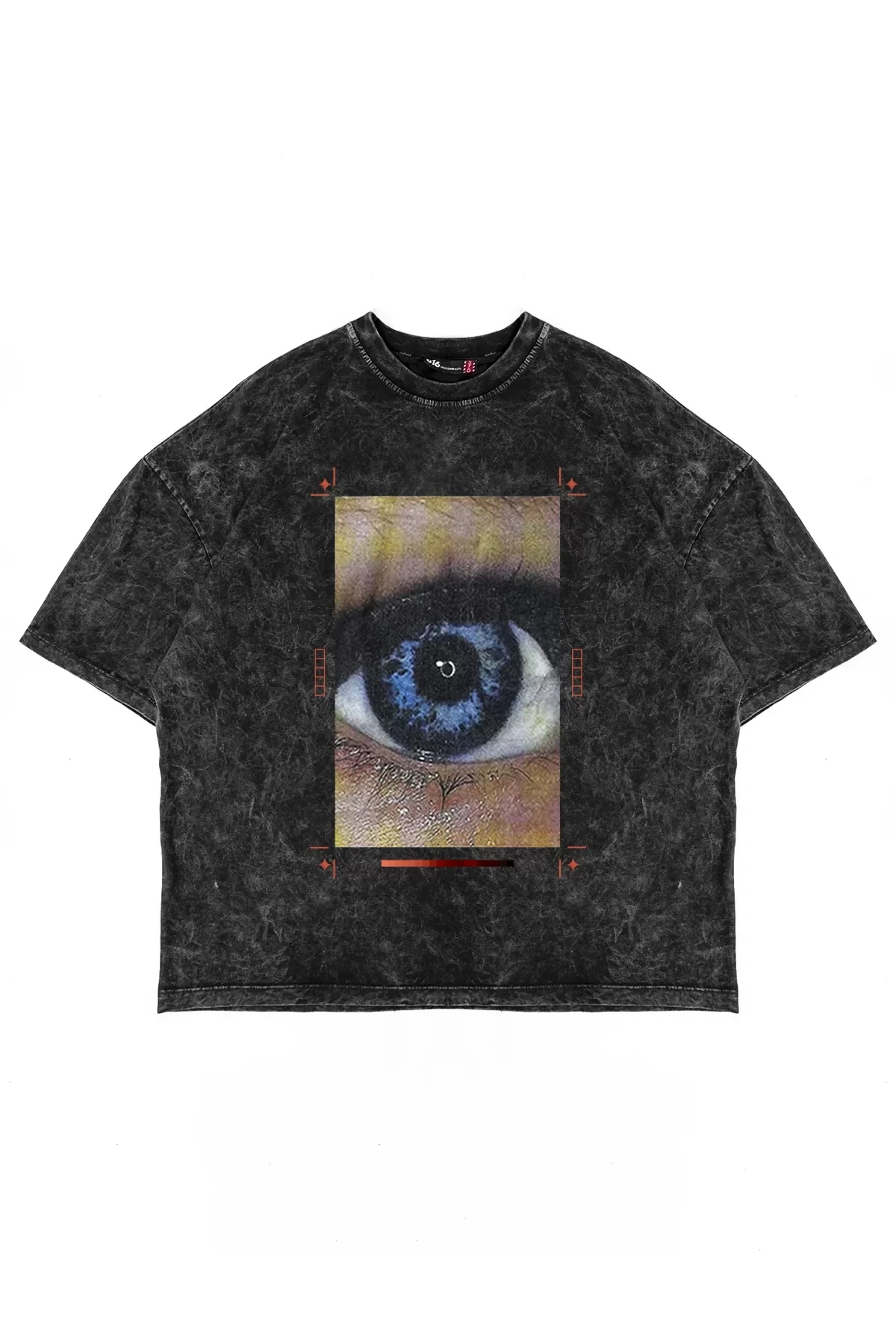 Y2K Eyes Baskılı 24/1 Oversize Unisex Yıkamalı Siyah Tshirt