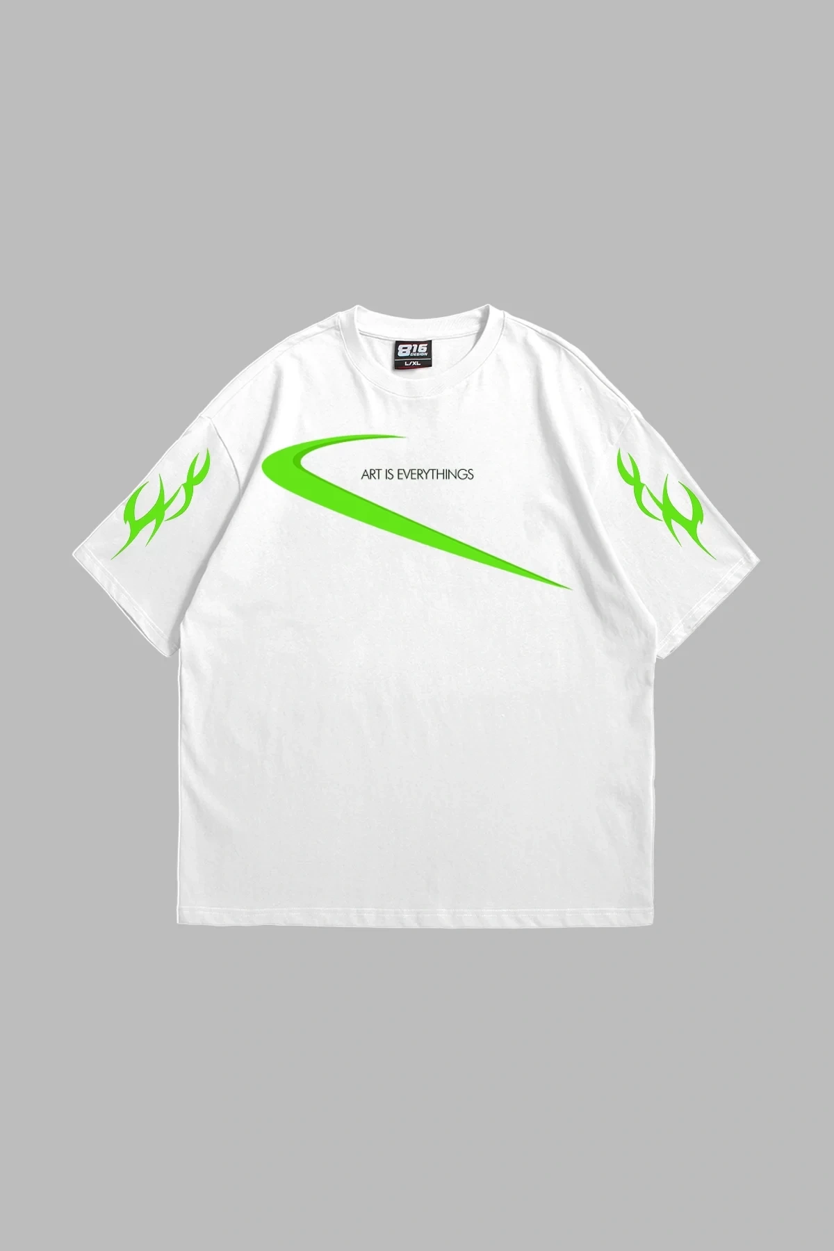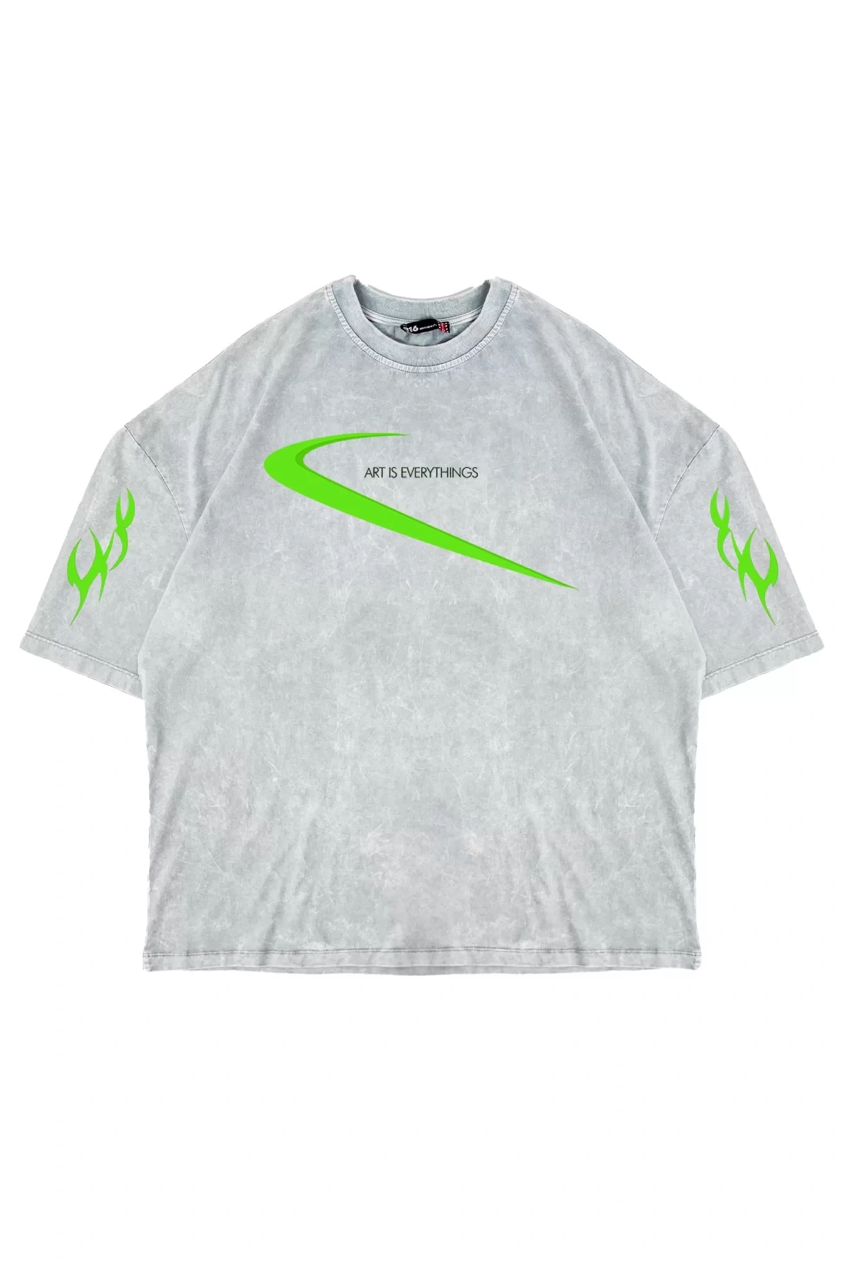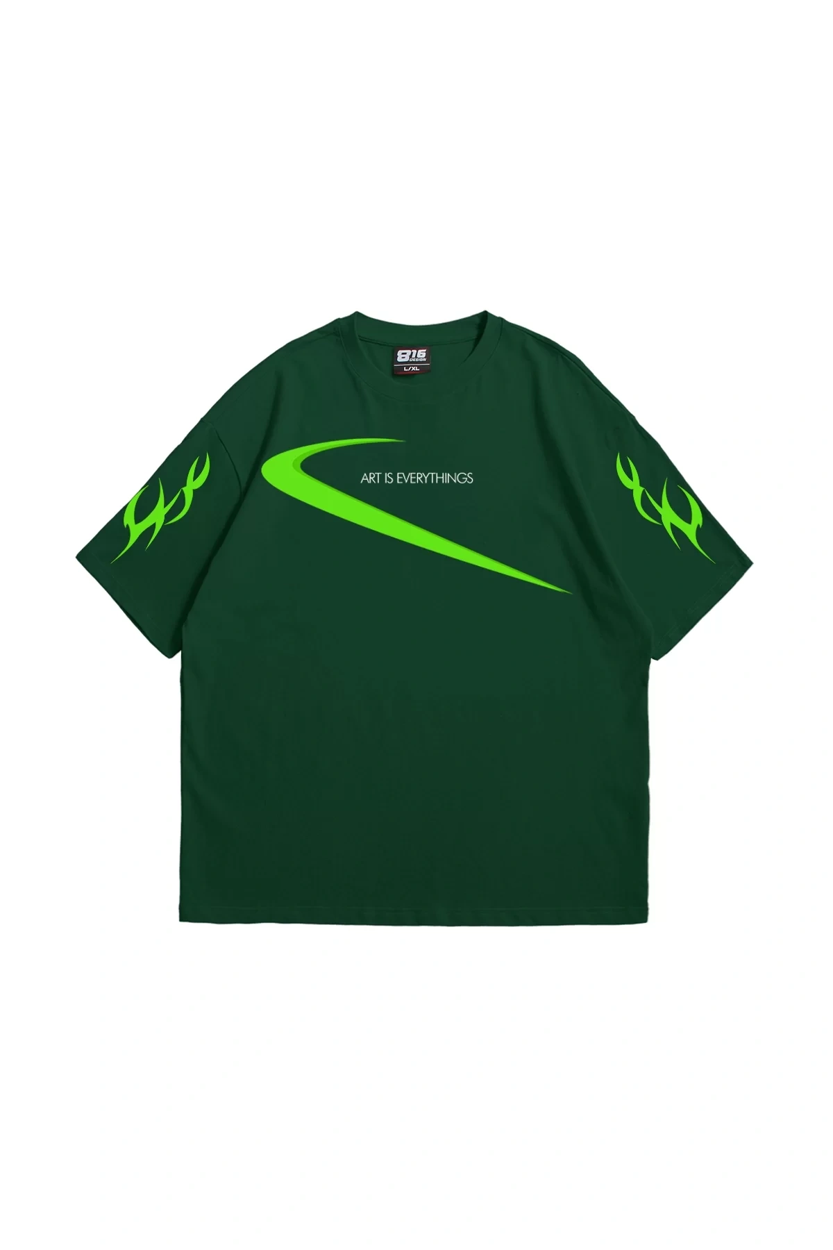Art Is Everythings Baskılı 24/1 Oversize Unisex Yeşil Tshirt