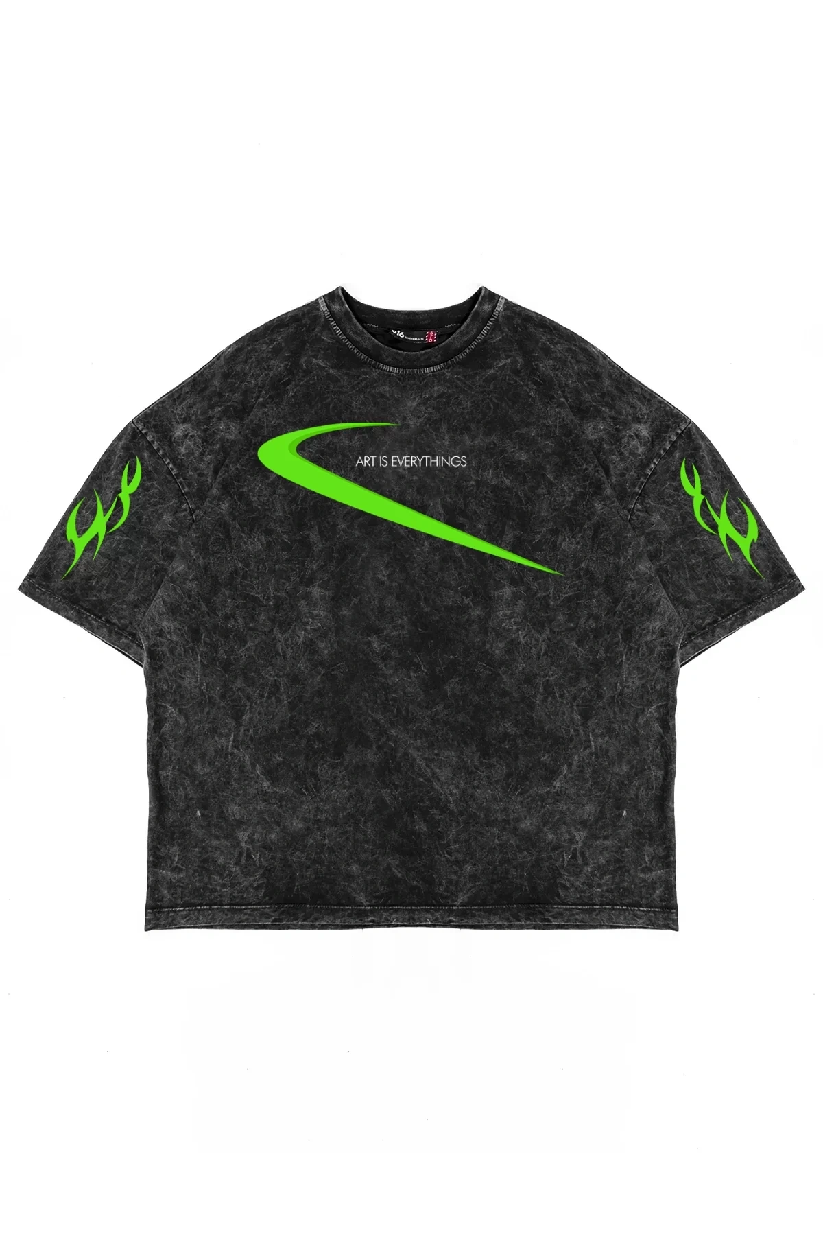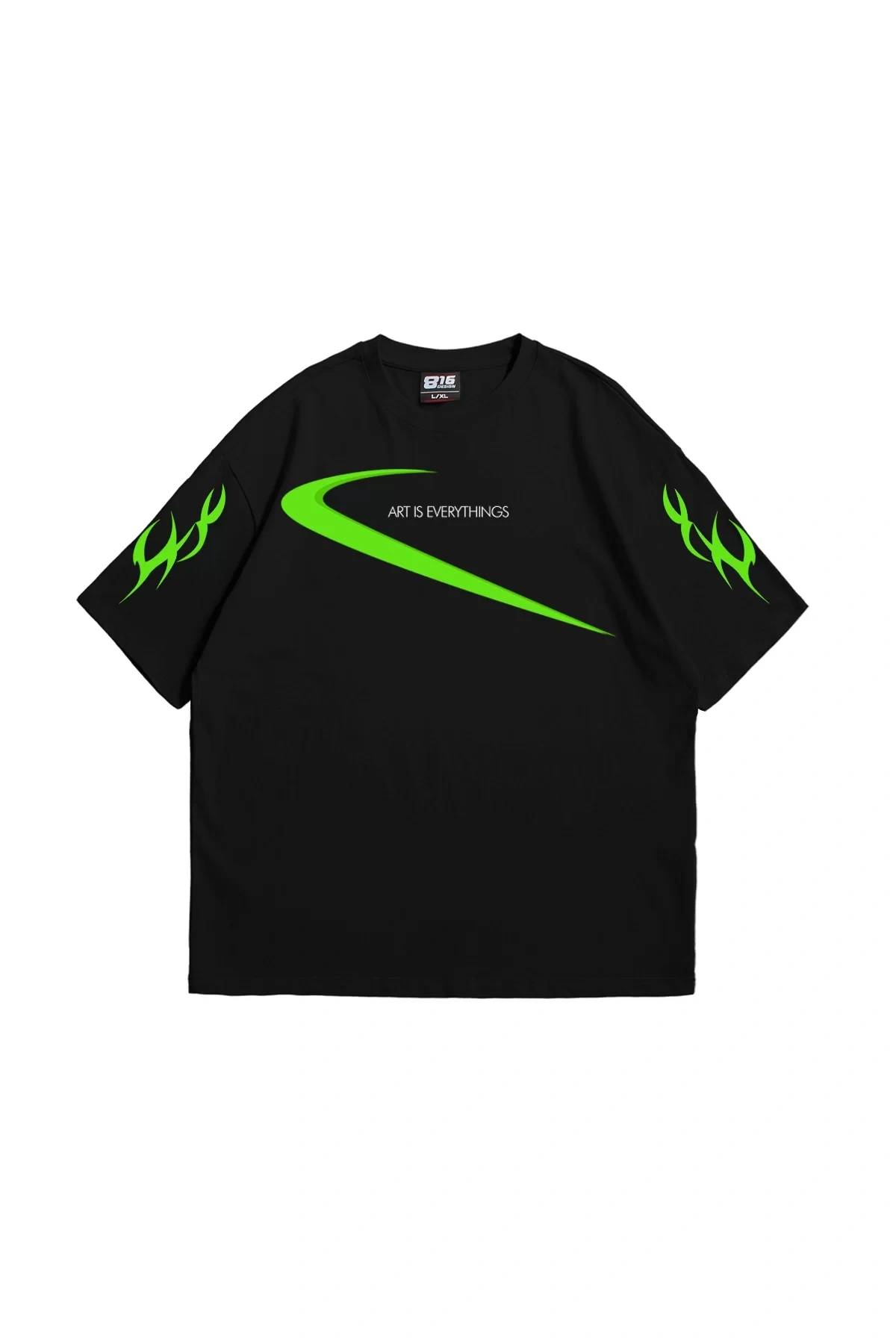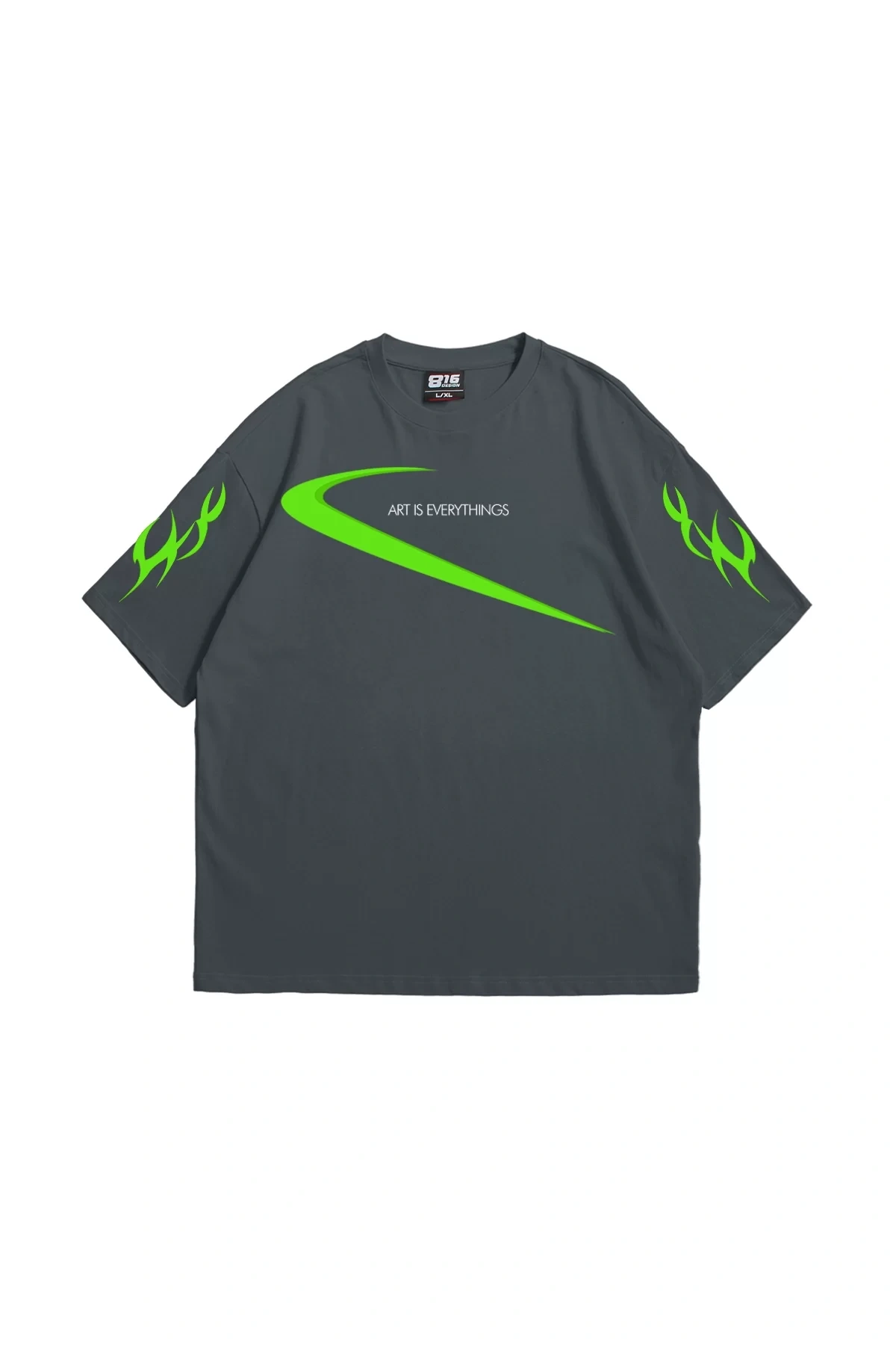 Art Is Everythings Baskılı 24/1 Oversize Unisex Yeşil Tshirt