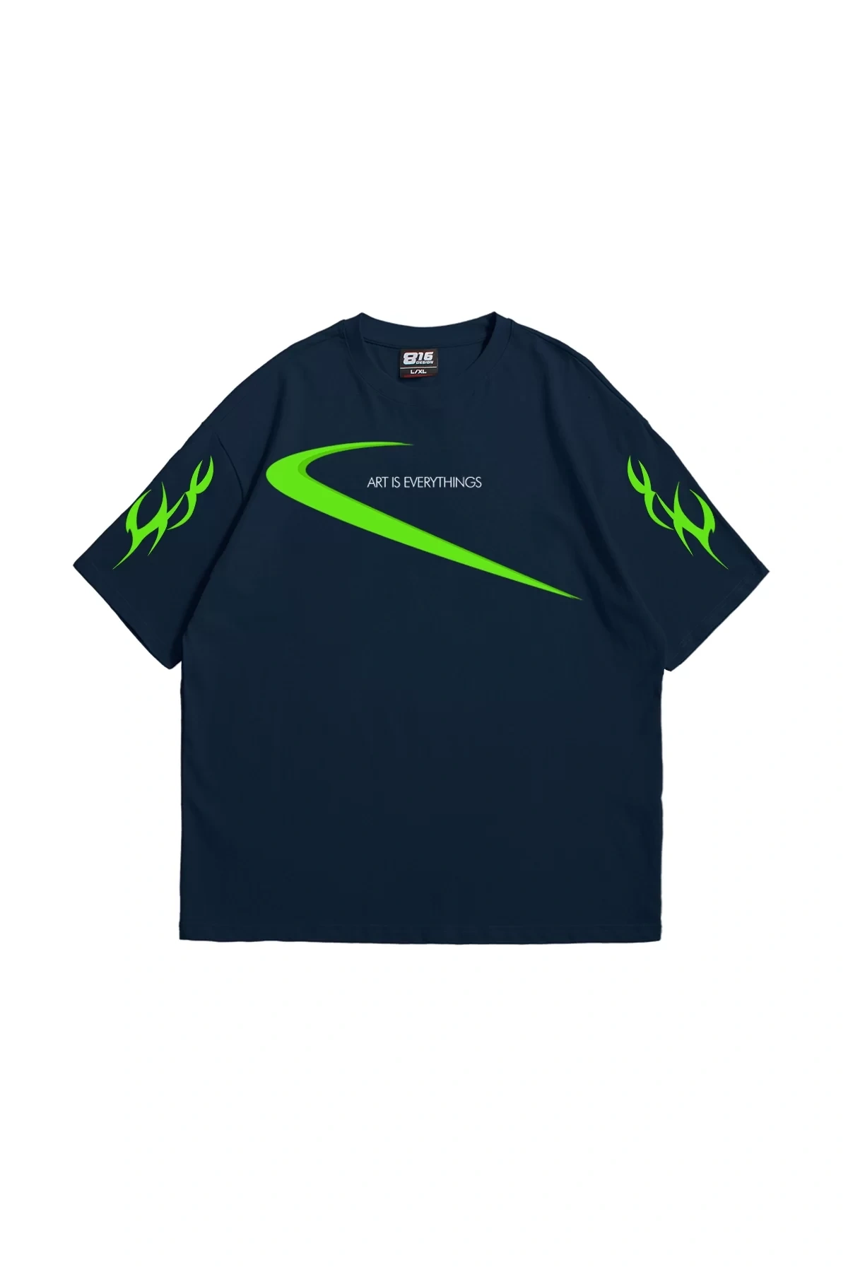 Art Is Everythings Baskılı 24/1 Oversize Unisex Lacivert Tshirt