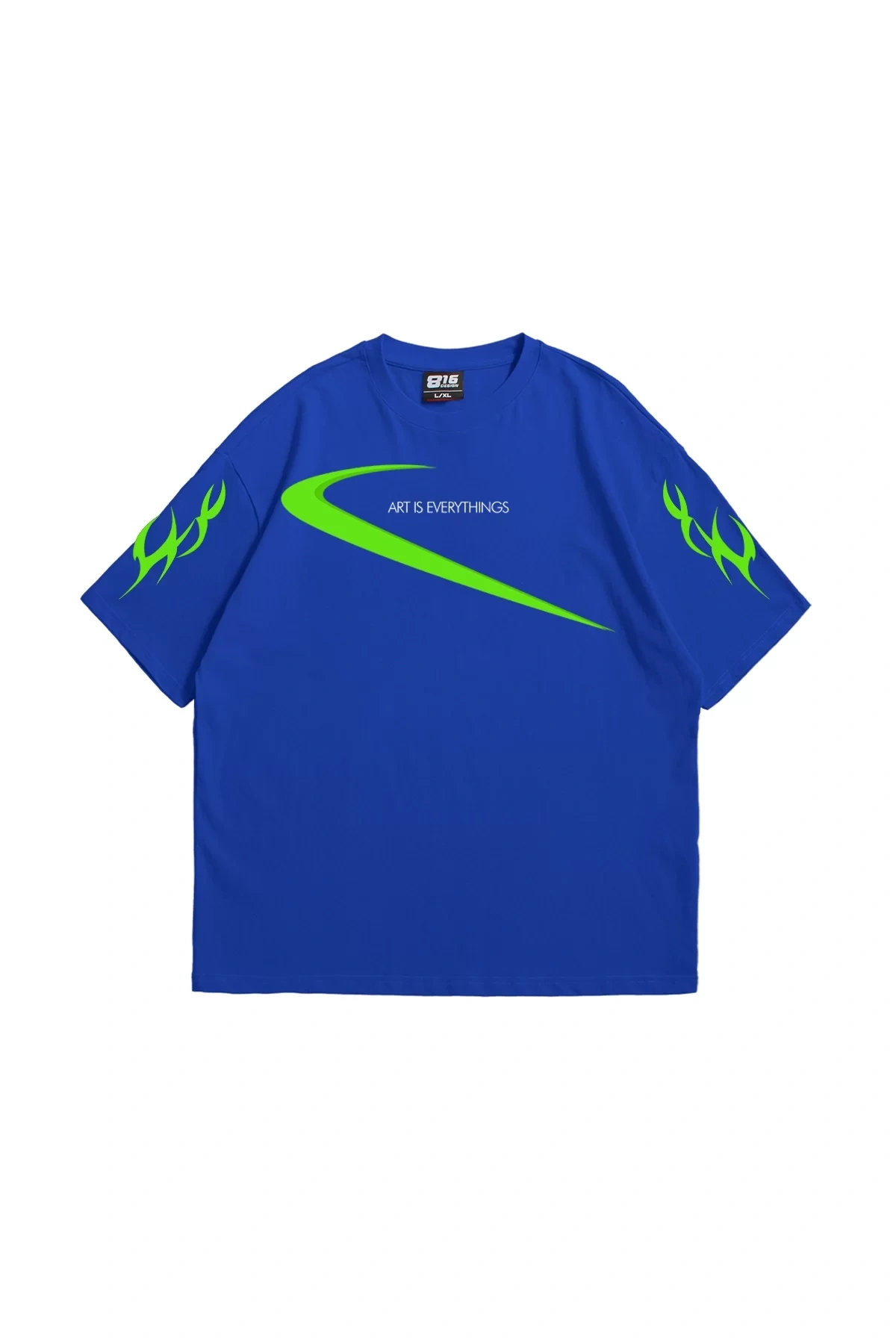 Art Is Everythings Baskılı 24/1 Oversize Unisex Mavi Tshirt