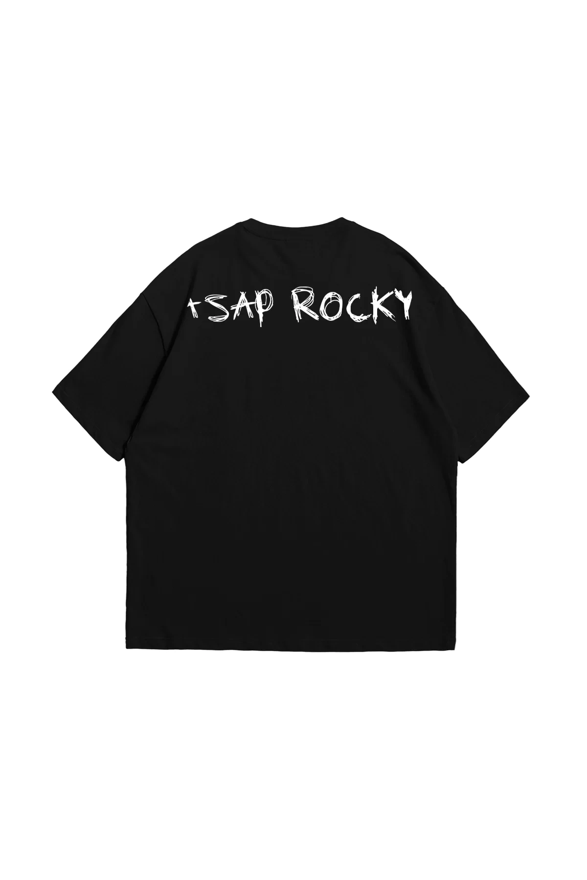 Asap Rocky Baskılı Oversize Unisex Premium Siyah Tshirt