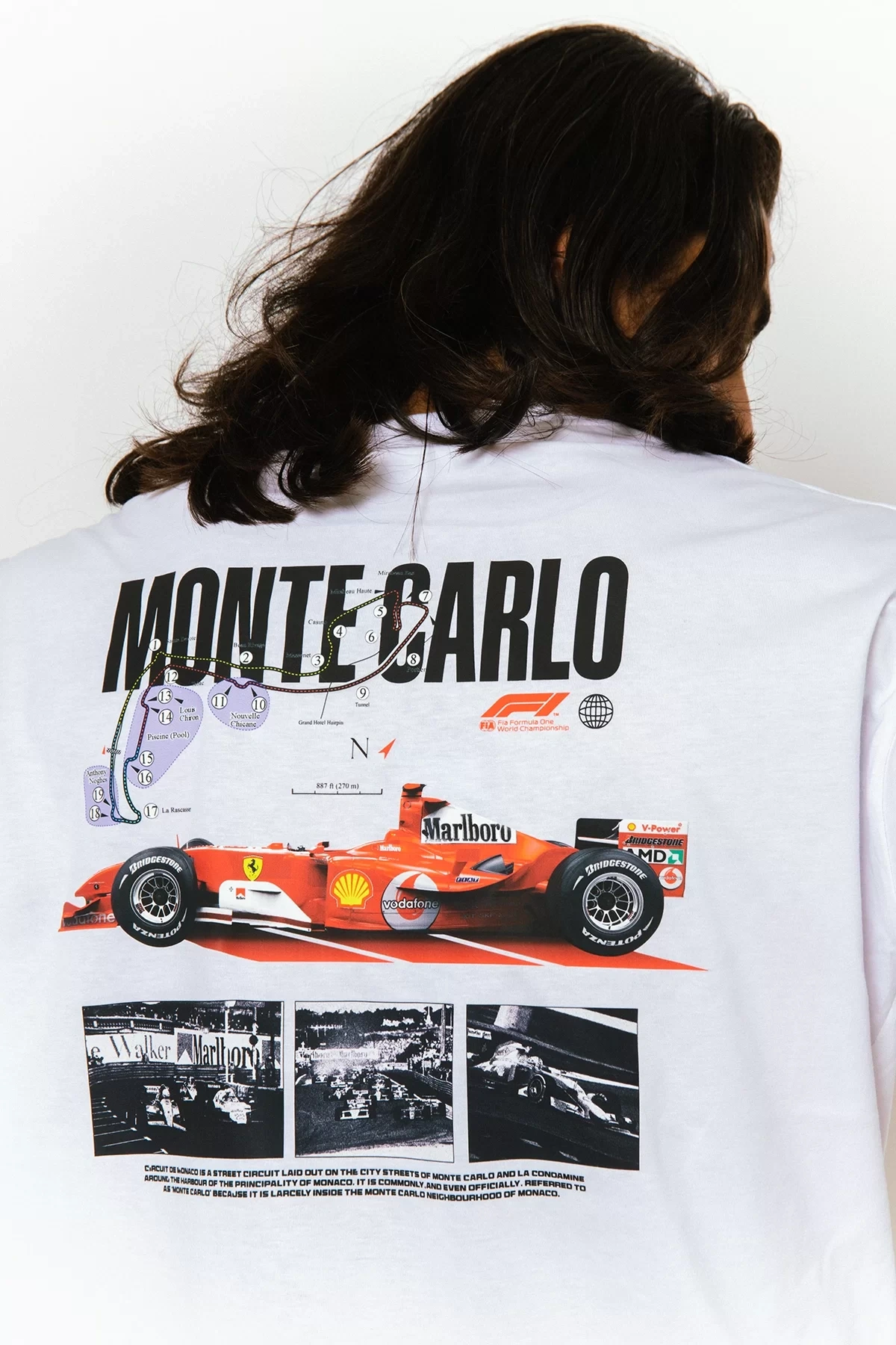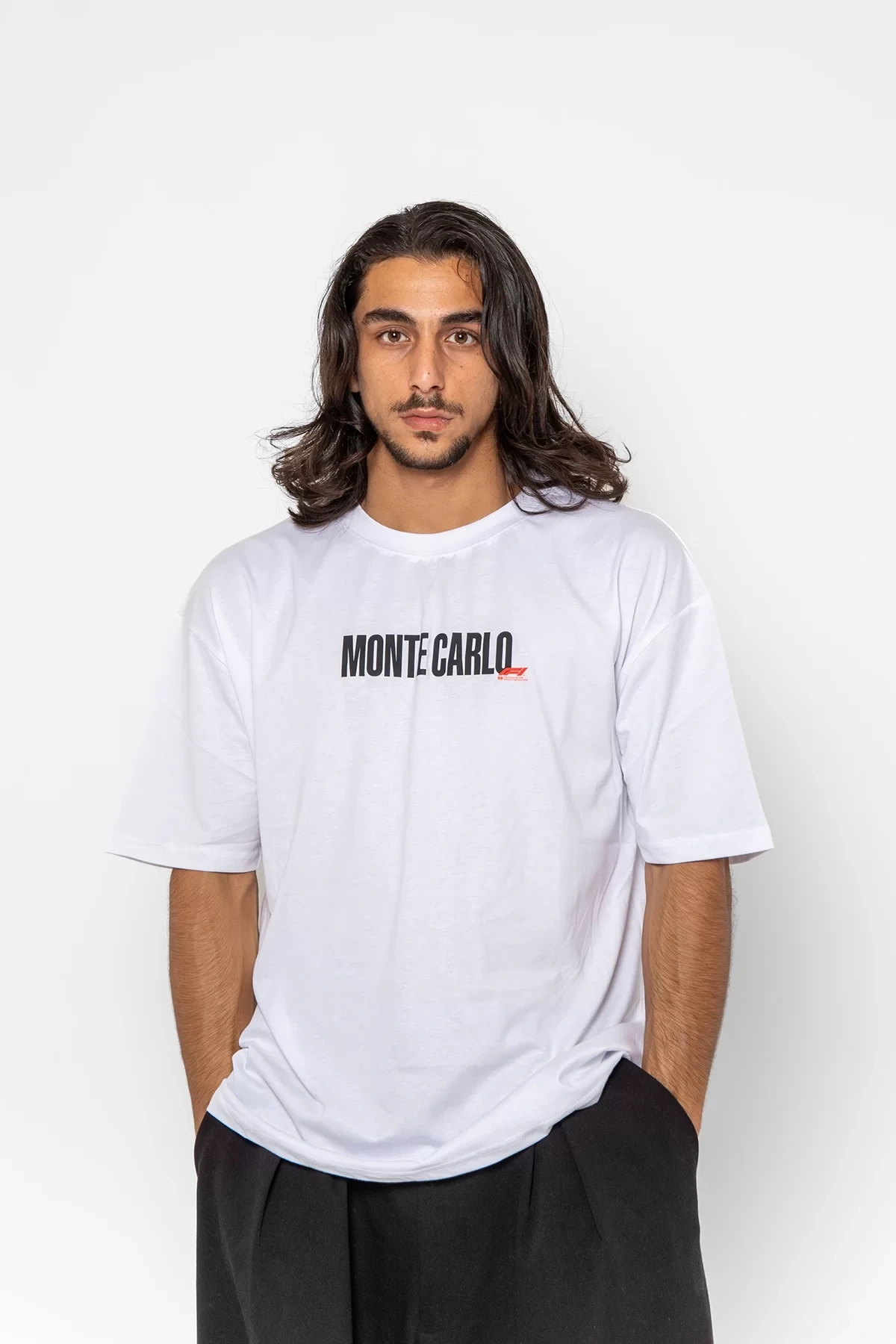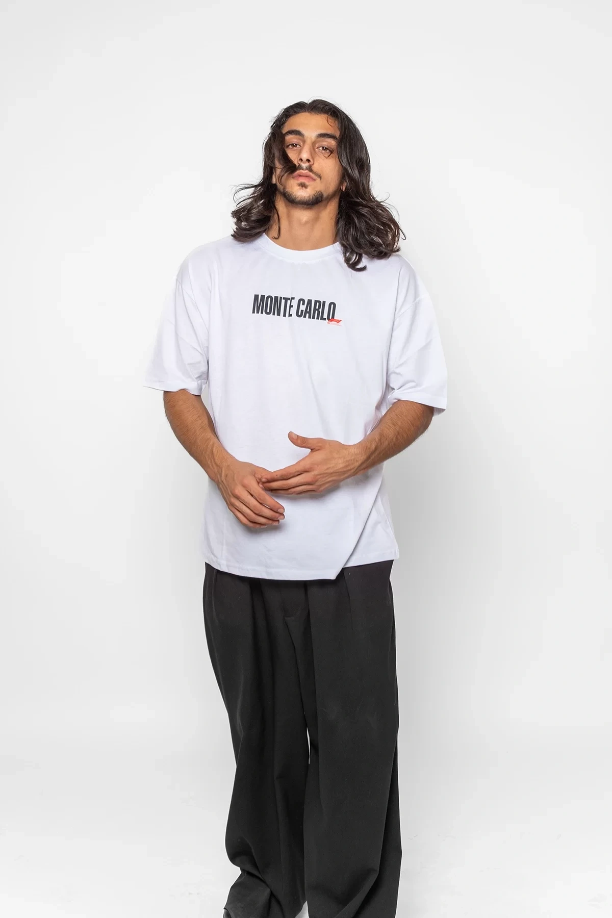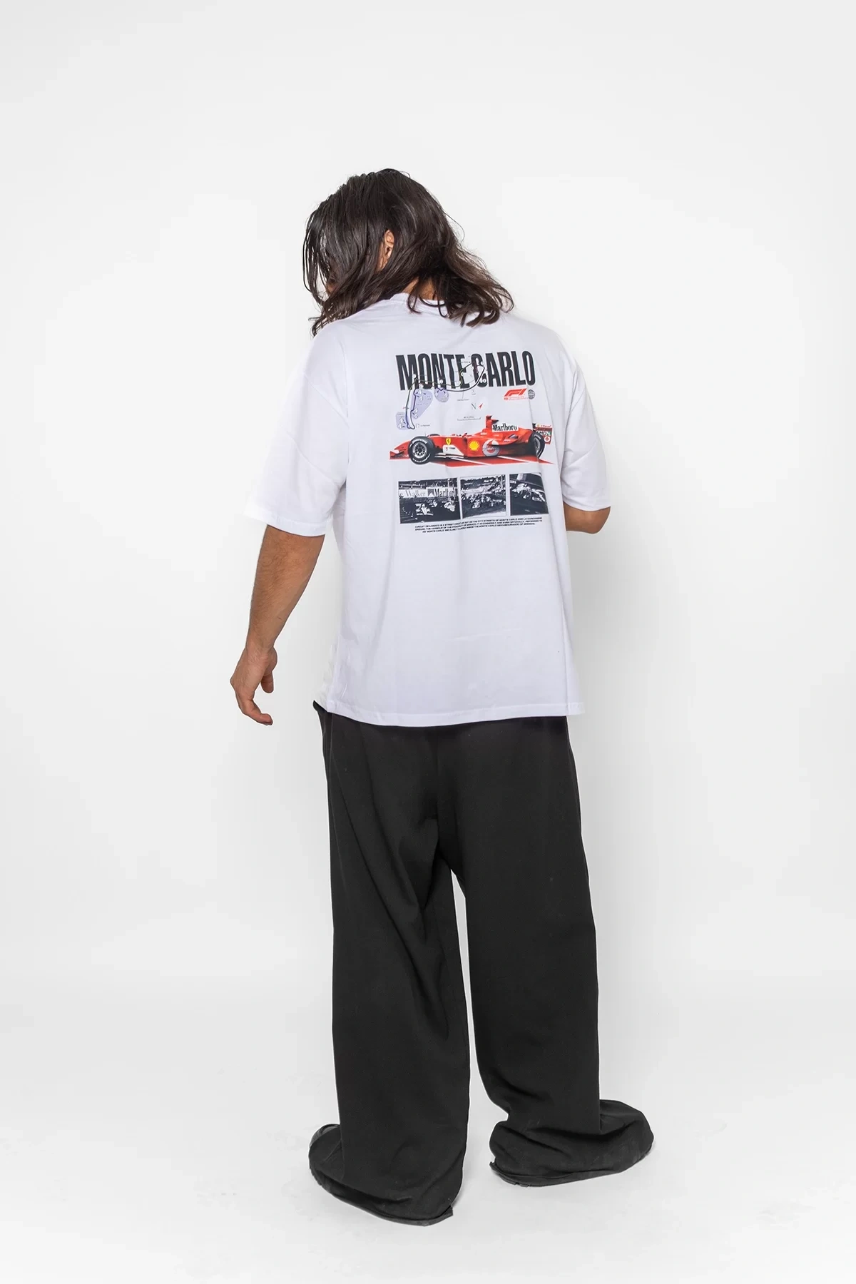 Monte Carlo Car Baskılı Oversize Unisex Premium Beyaz Tshirt