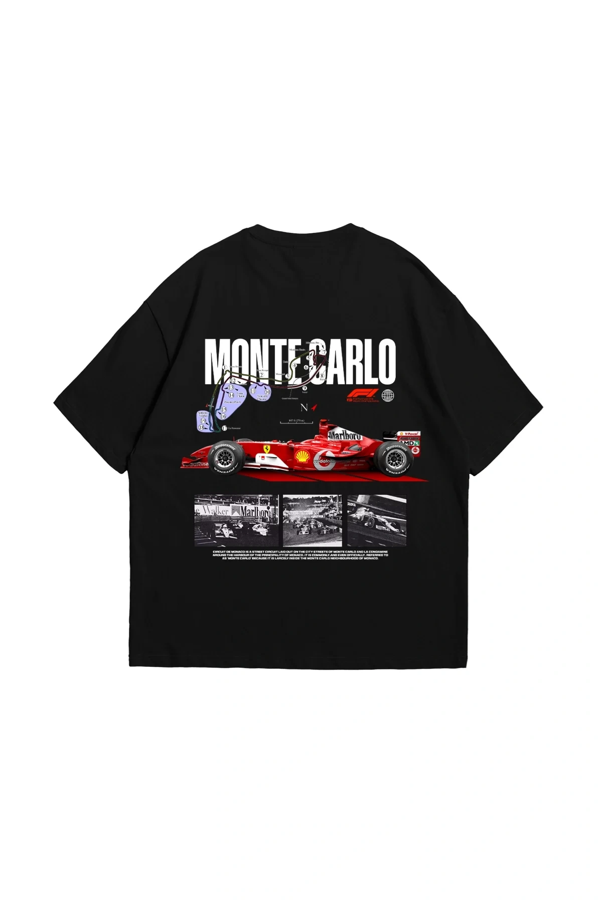 Monte Carlo Car Baskılı Oversize Unisex Premium Siyah Tshirt