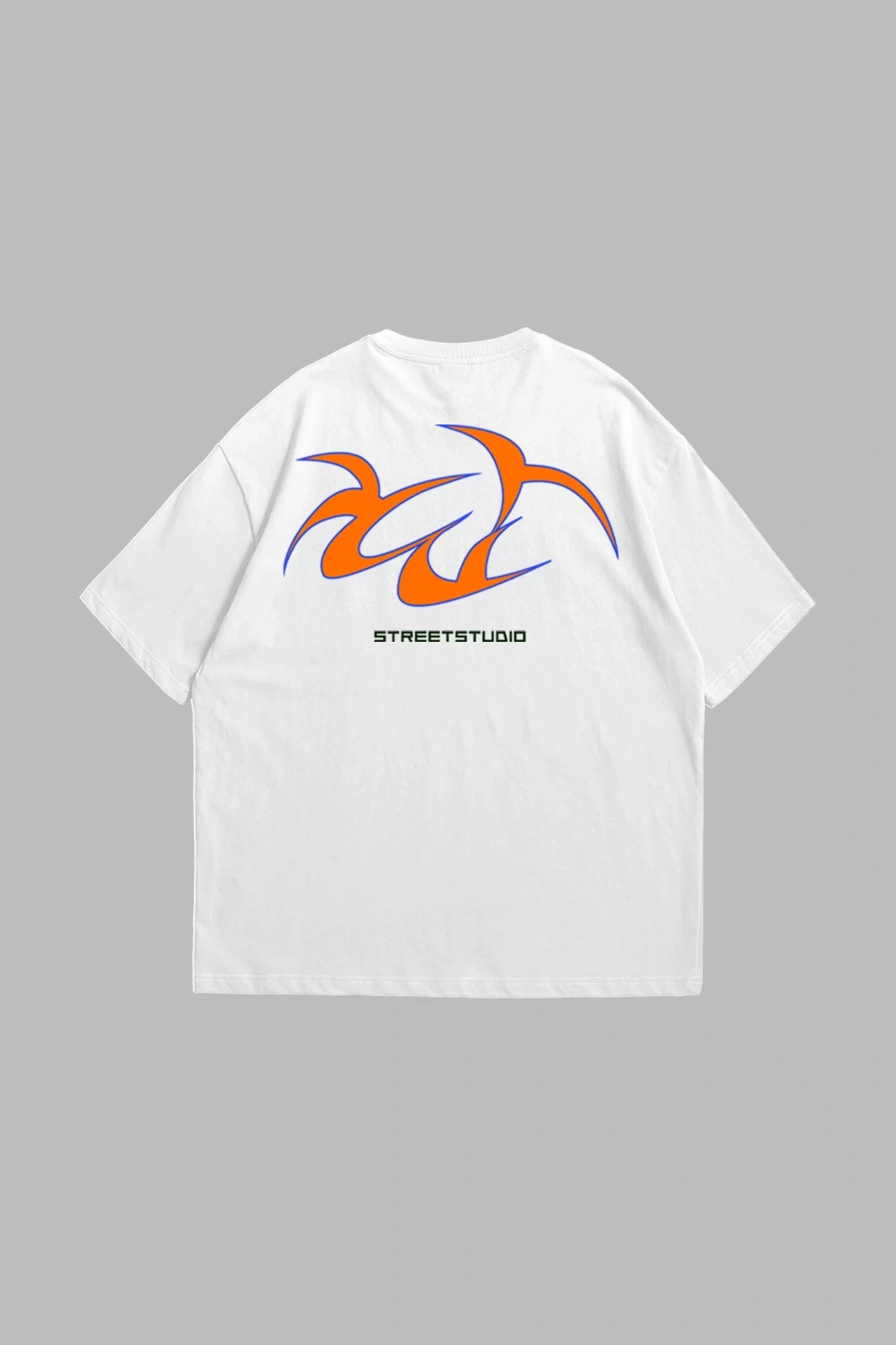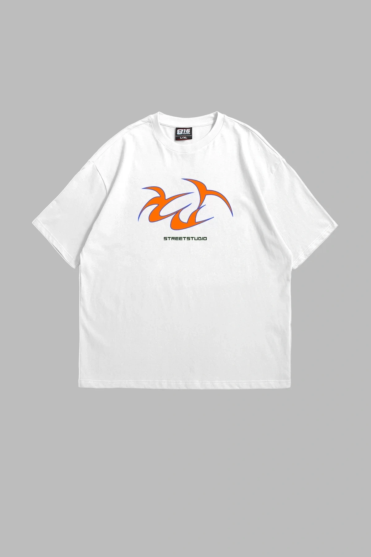 Street Studio Baskılı 24/1 Oversize Unisex Beyaz Tshirt