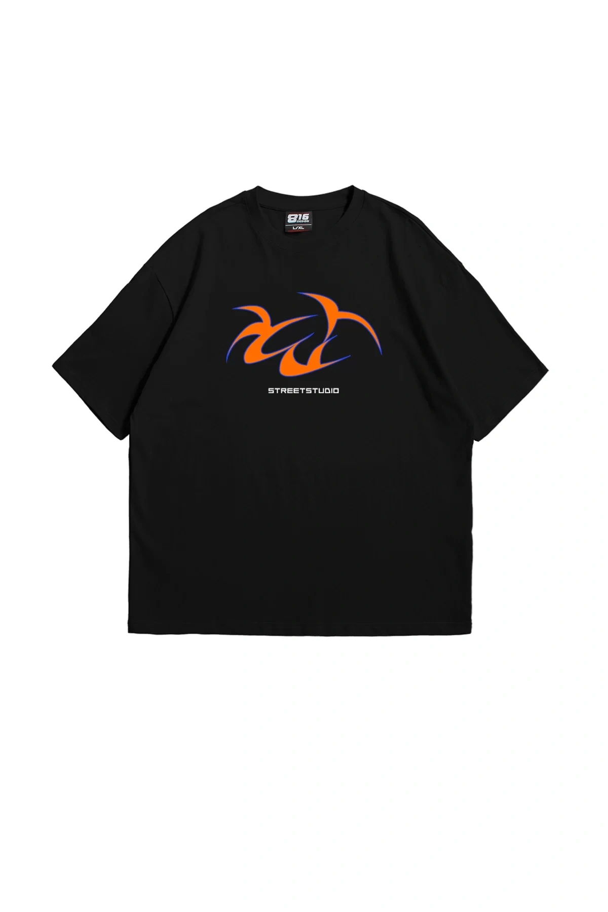 Street Studio Baskılı 24/1 Oversize Unisex Siyah Tshirt