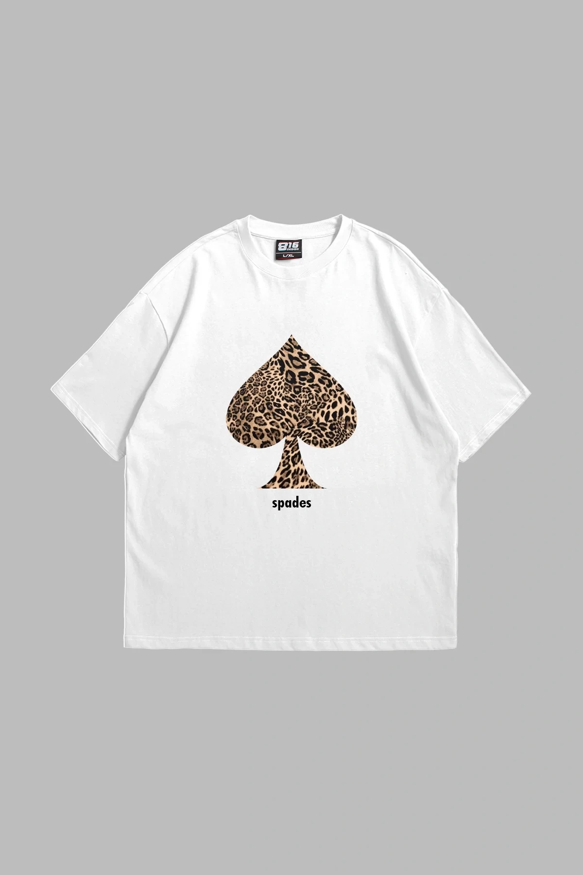 Spades Leopar Baskılı Oversize Unisex Premium Beyaz Tshirt