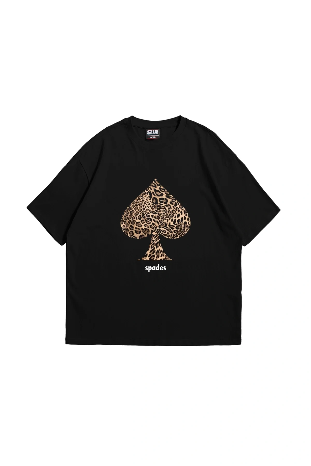 Spades Leopar Baskılı Oversize Unisex Premium Siyah Tshirt