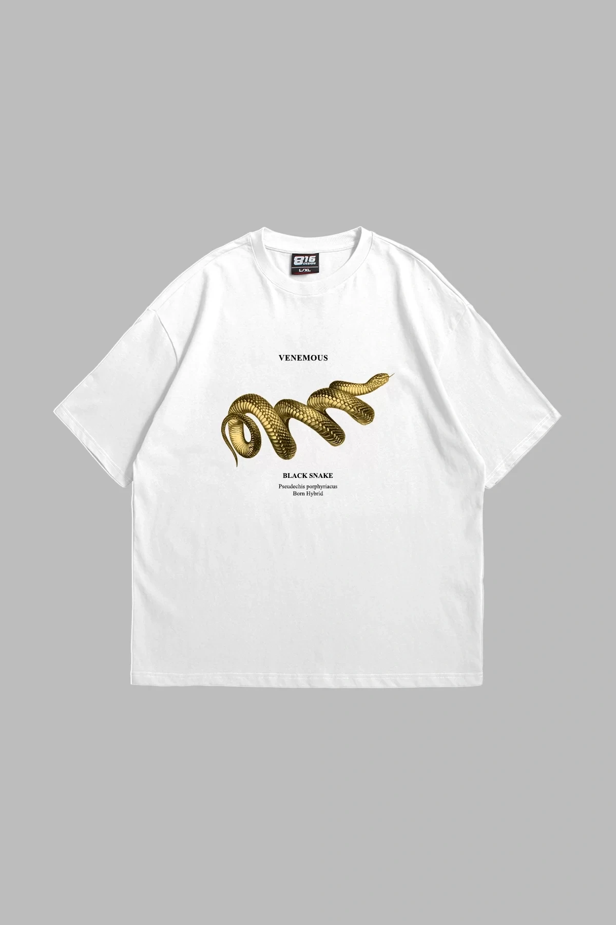Venomous Baskılı Oversize Unisex Premium Beyaz Tshirt