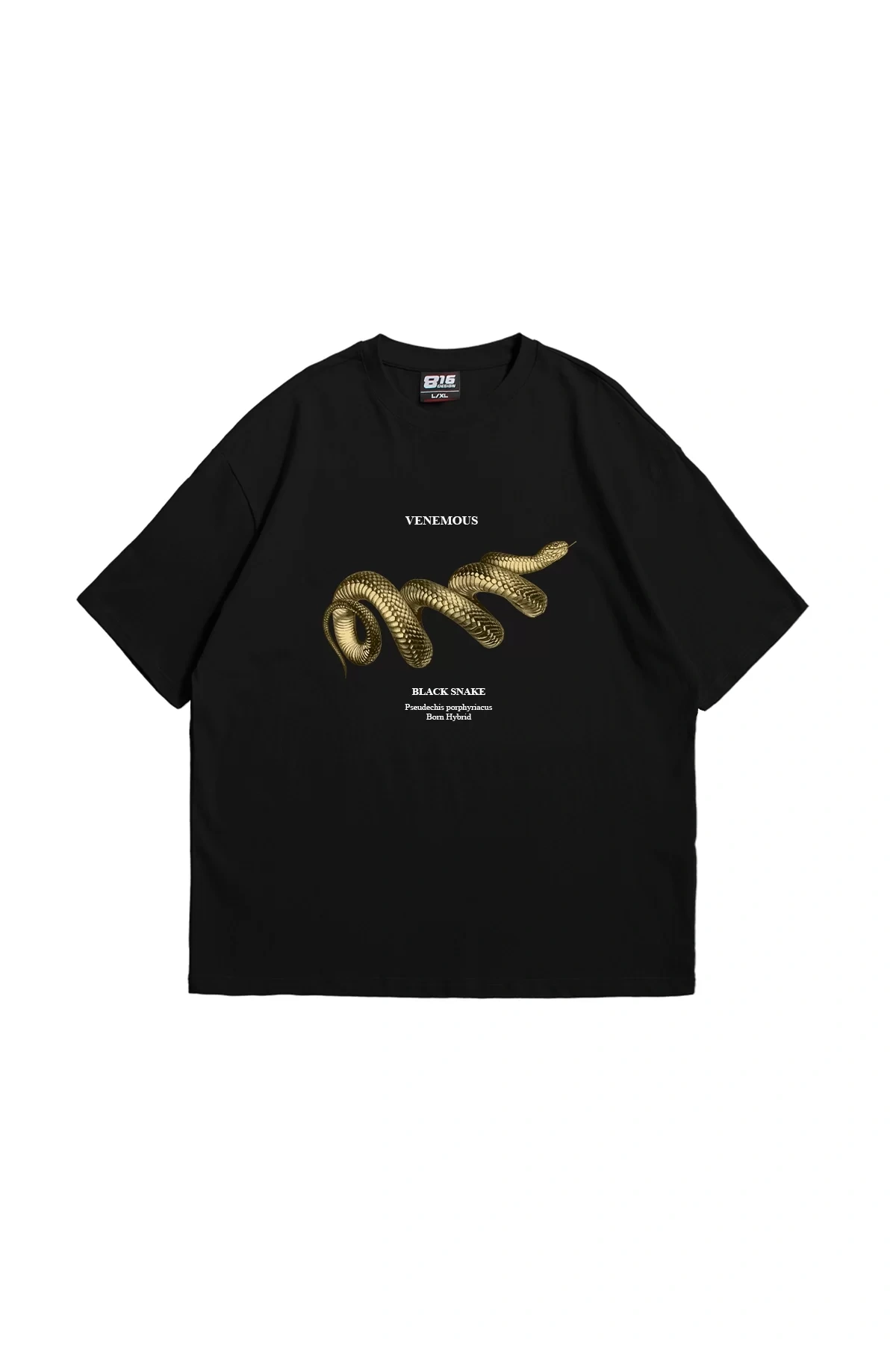 Venomous Baskılı Oversize Unisex Premium Siyah Tshirt