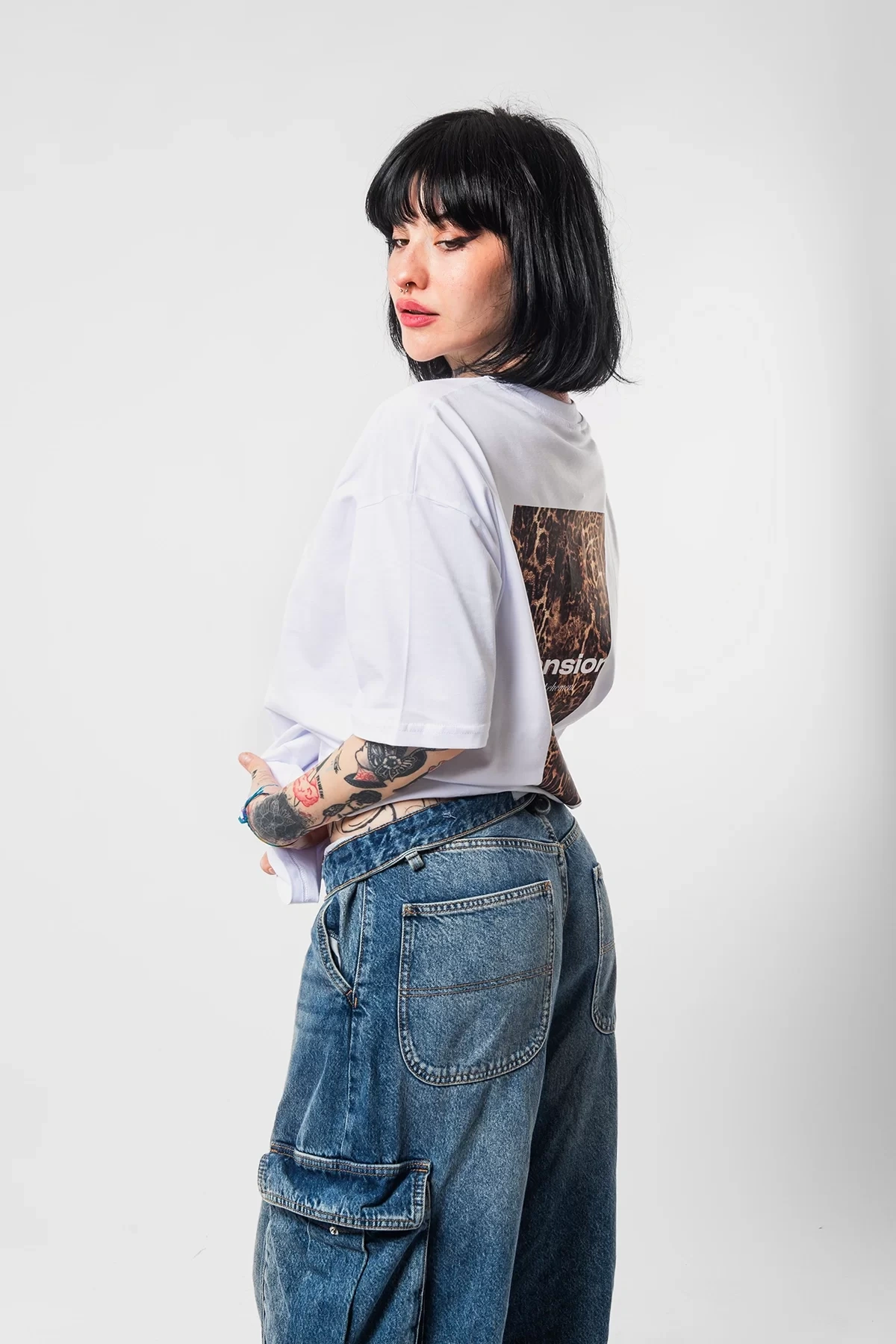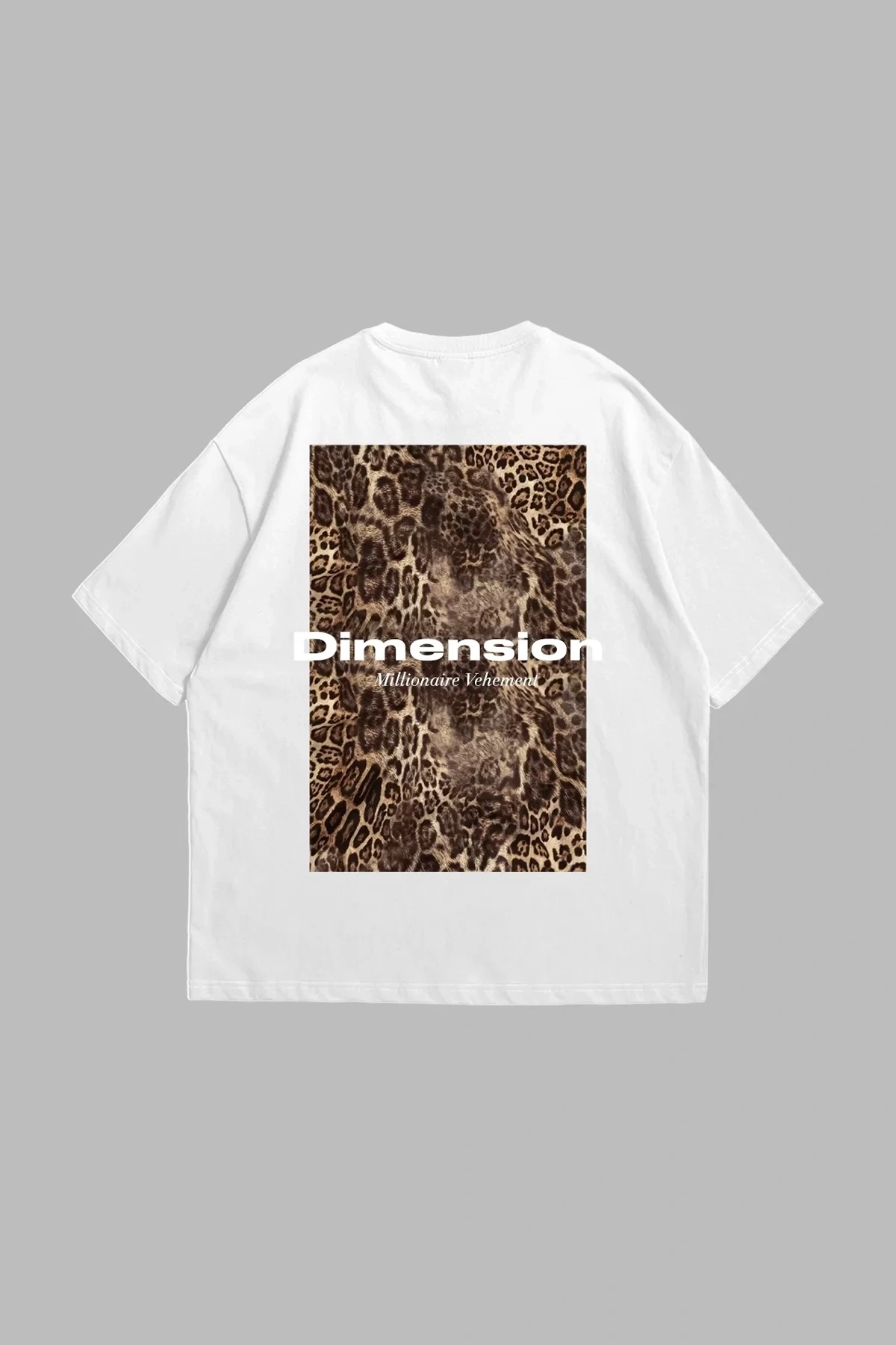 Dİmension Baskılı Leopar Desenli 24/1 Oversize Unisex Beyaz Tshirt